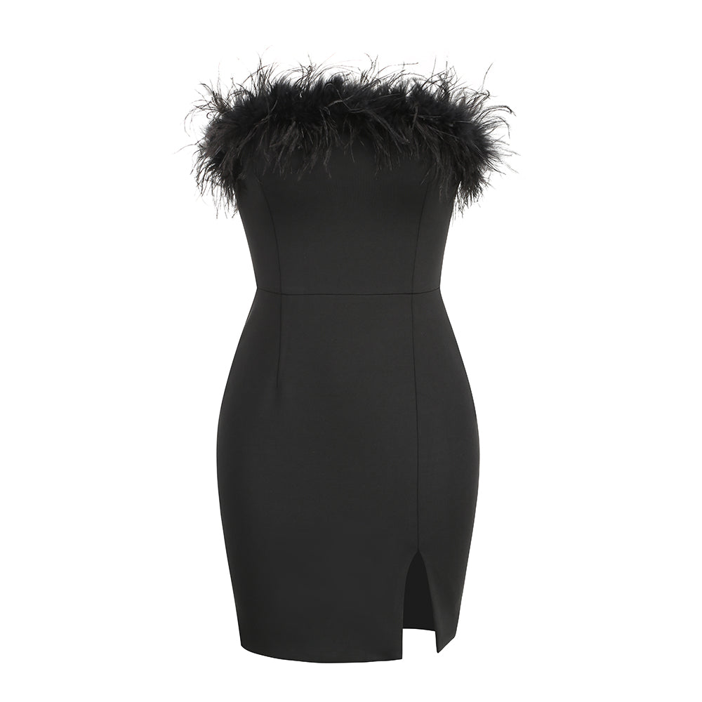 Strapless Sleeveless Feather Mini Bodycon Dress KLYF800