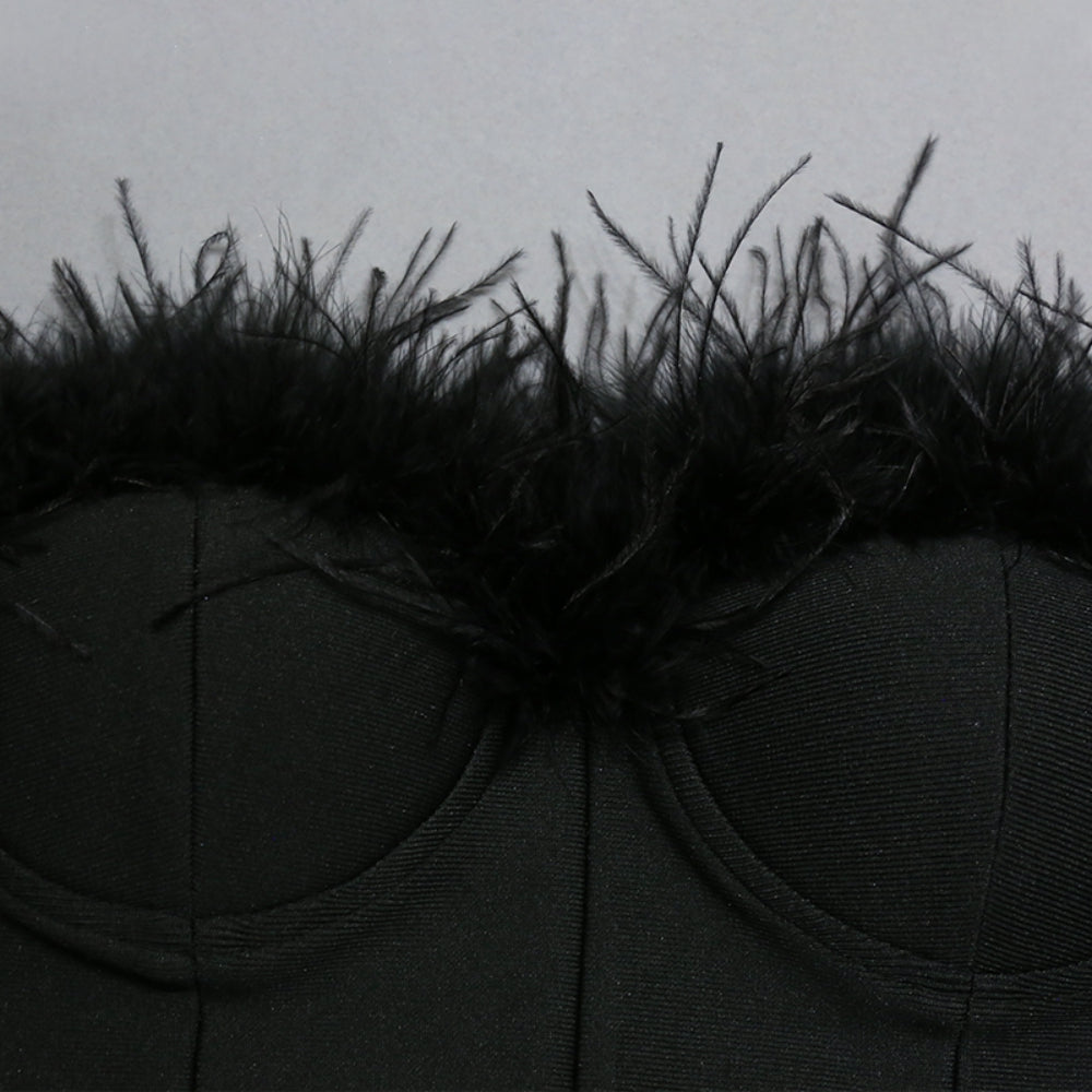 Strapless Sleeveless Hairy Maxi Bandage Dress