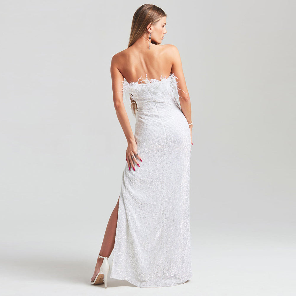 Strapless Sleeveless Maxi Sequins Bodycon Dress