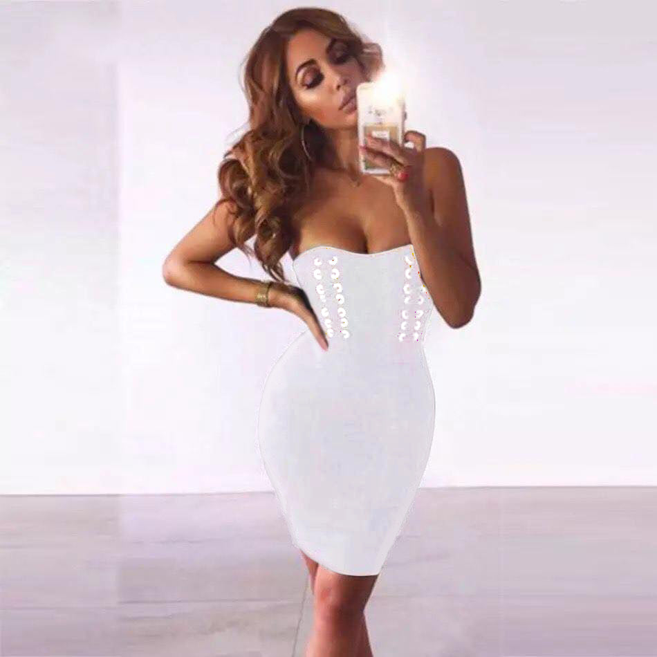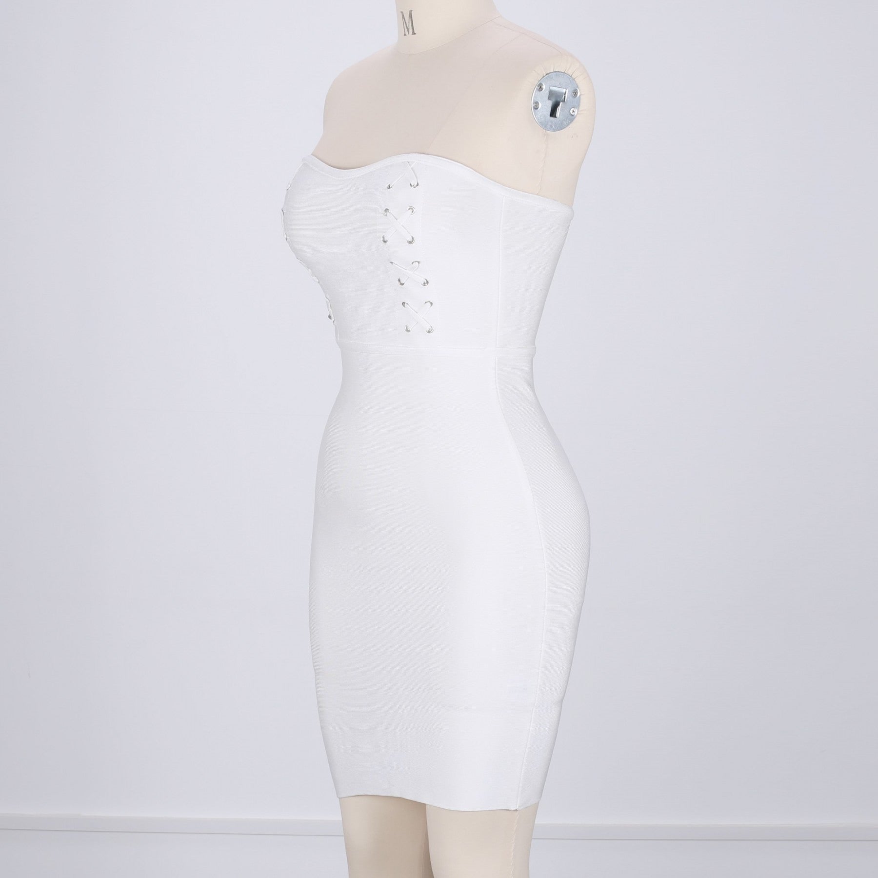 Strapless Sleeveless Metal Studded Mini Bandage Dress