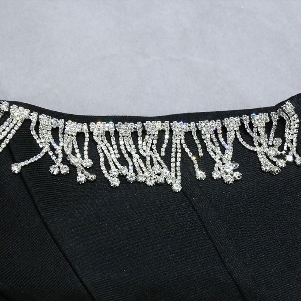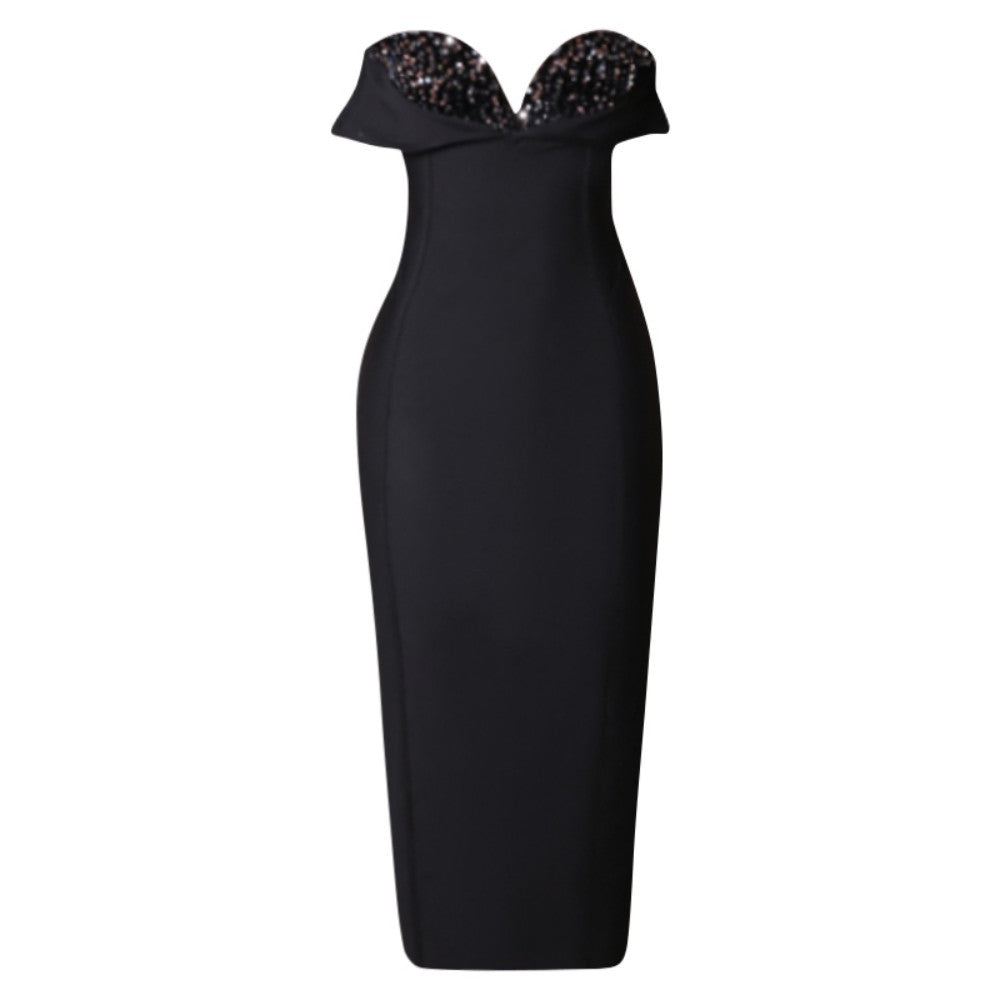 Strapless Sleeveless Midi Drill Chain Bandage Dress