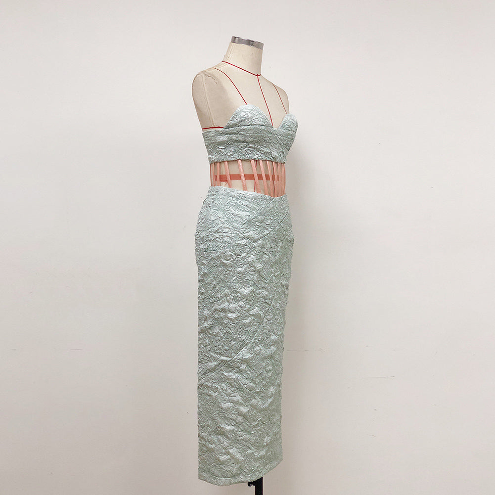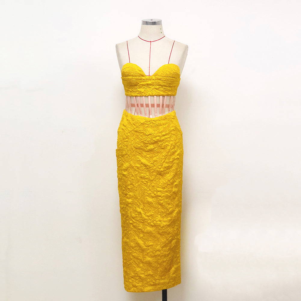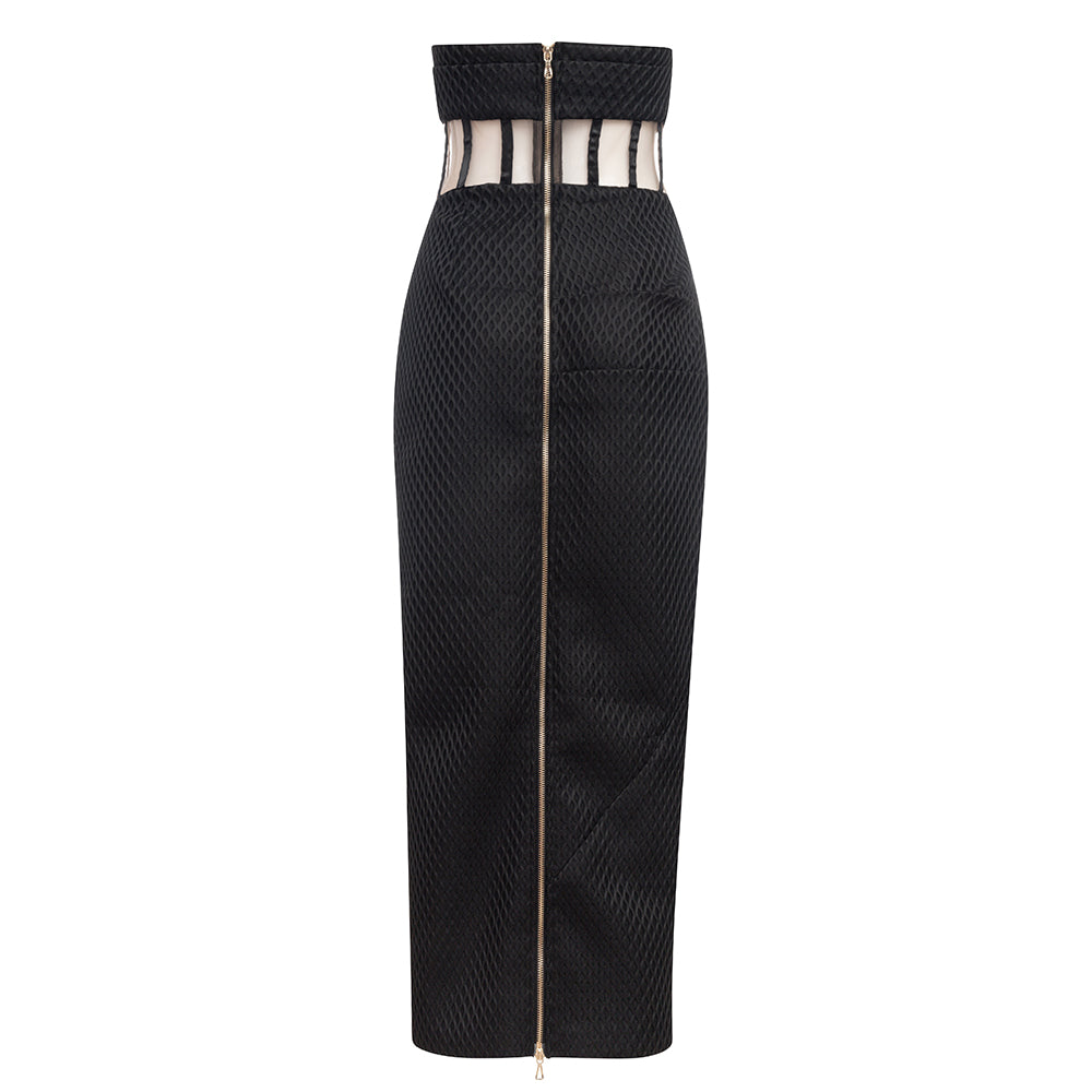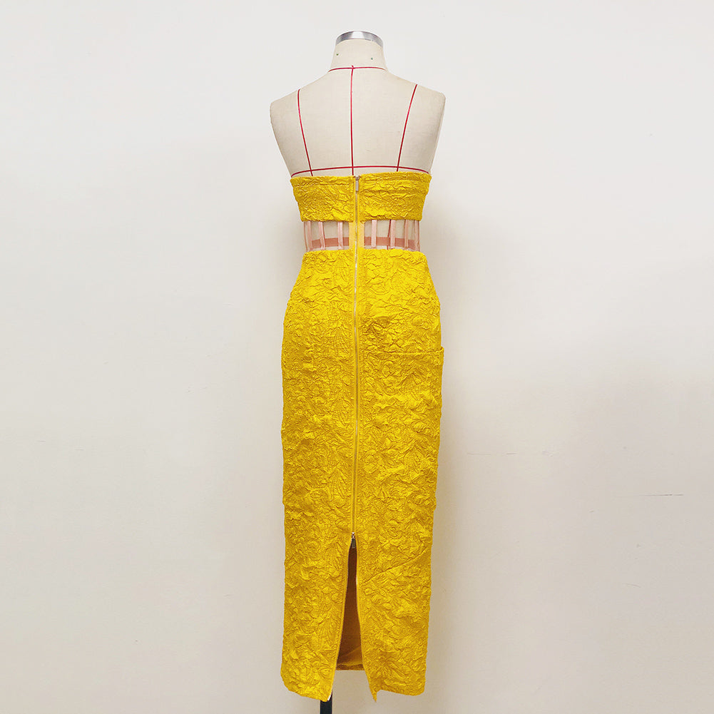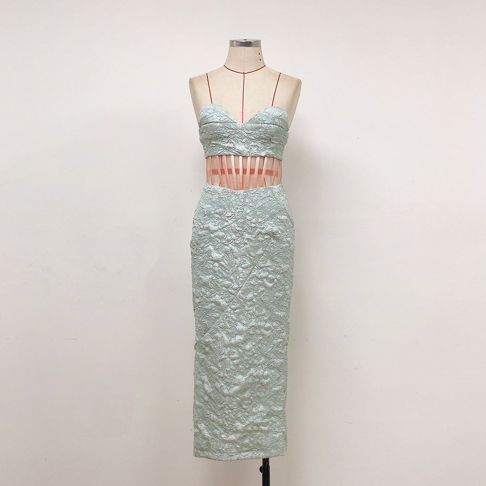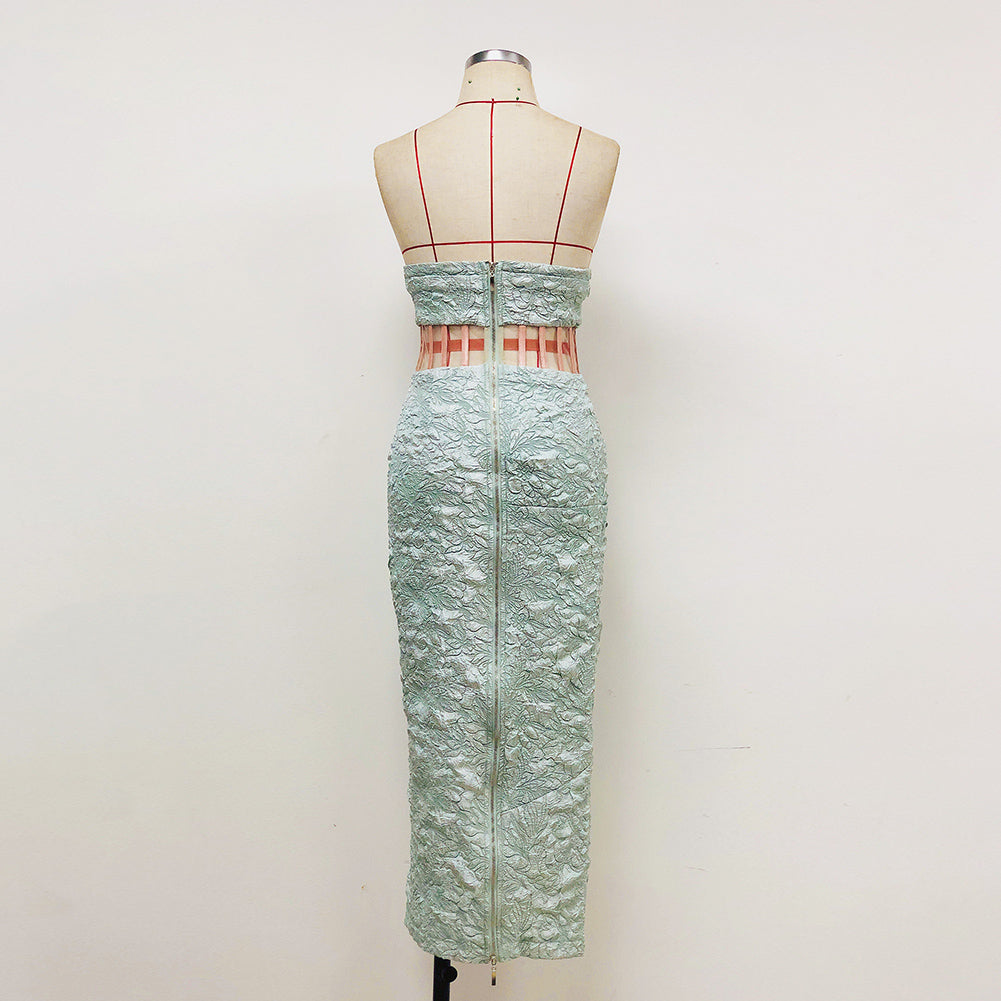 Strapless Sleeveless Midi Striped Bodycon Dress