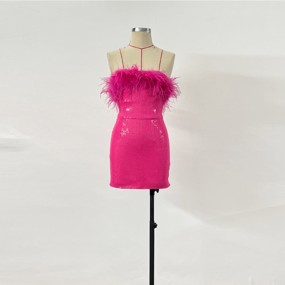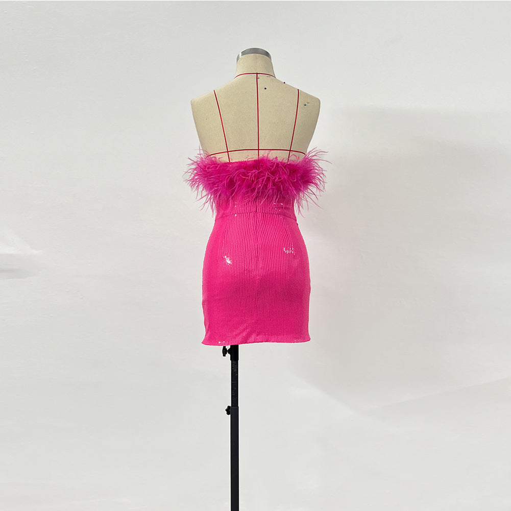 Strapless Sleeveless Mini Feather Bodycon Dress