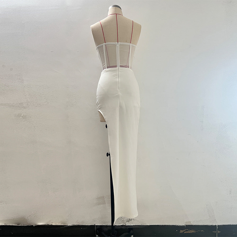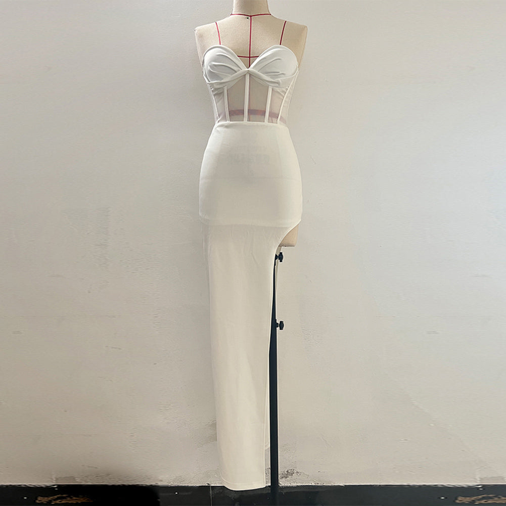 Strapless Sleeveless Over Knee Mesh Bodycon Dress