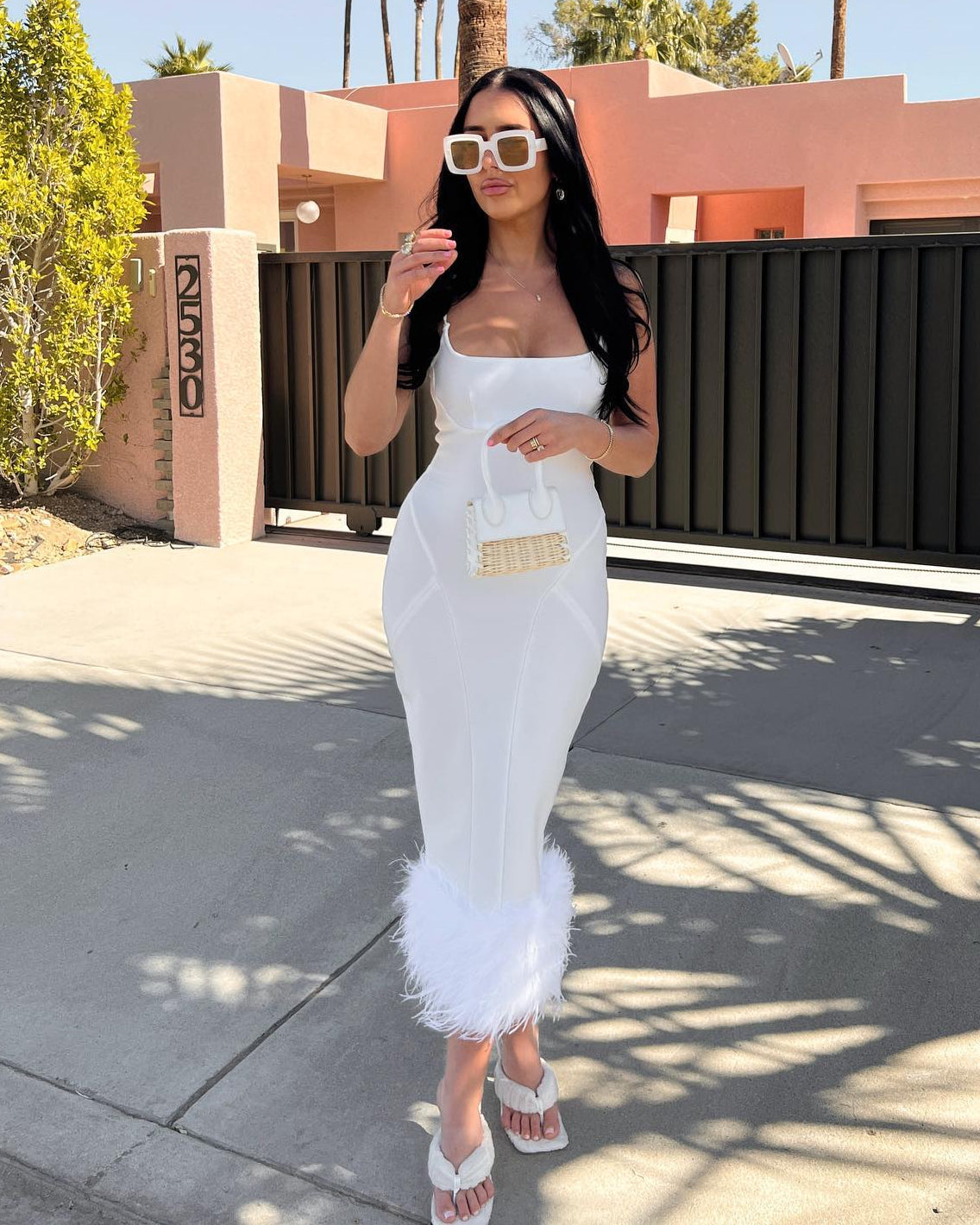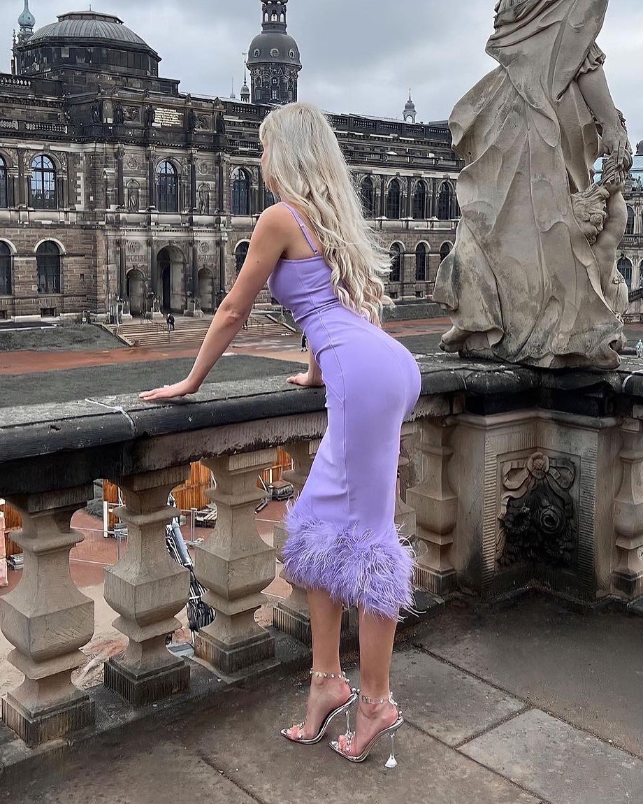 Strappy Feather Midi Bandage Dress