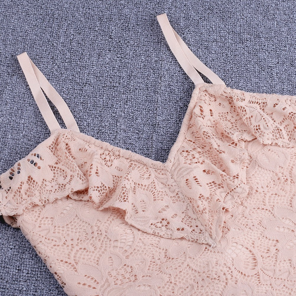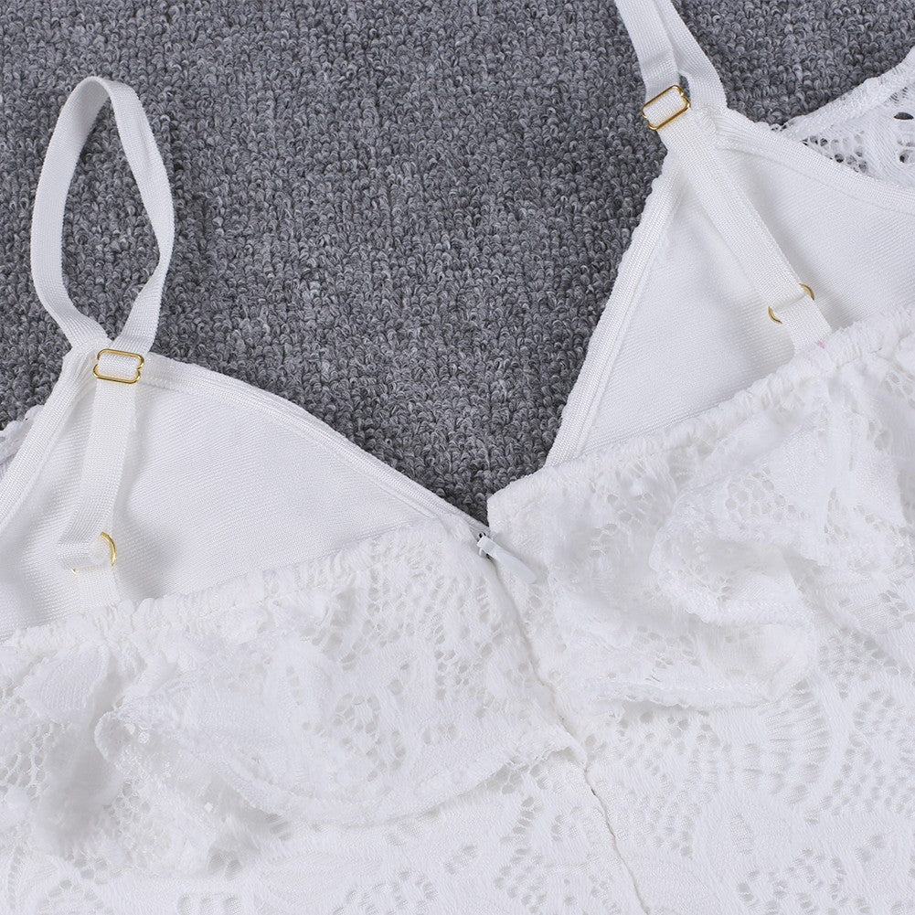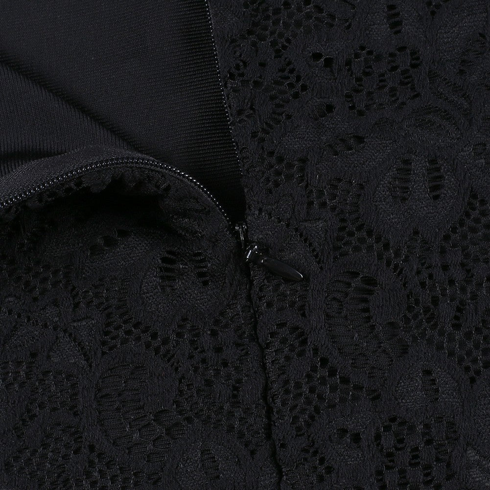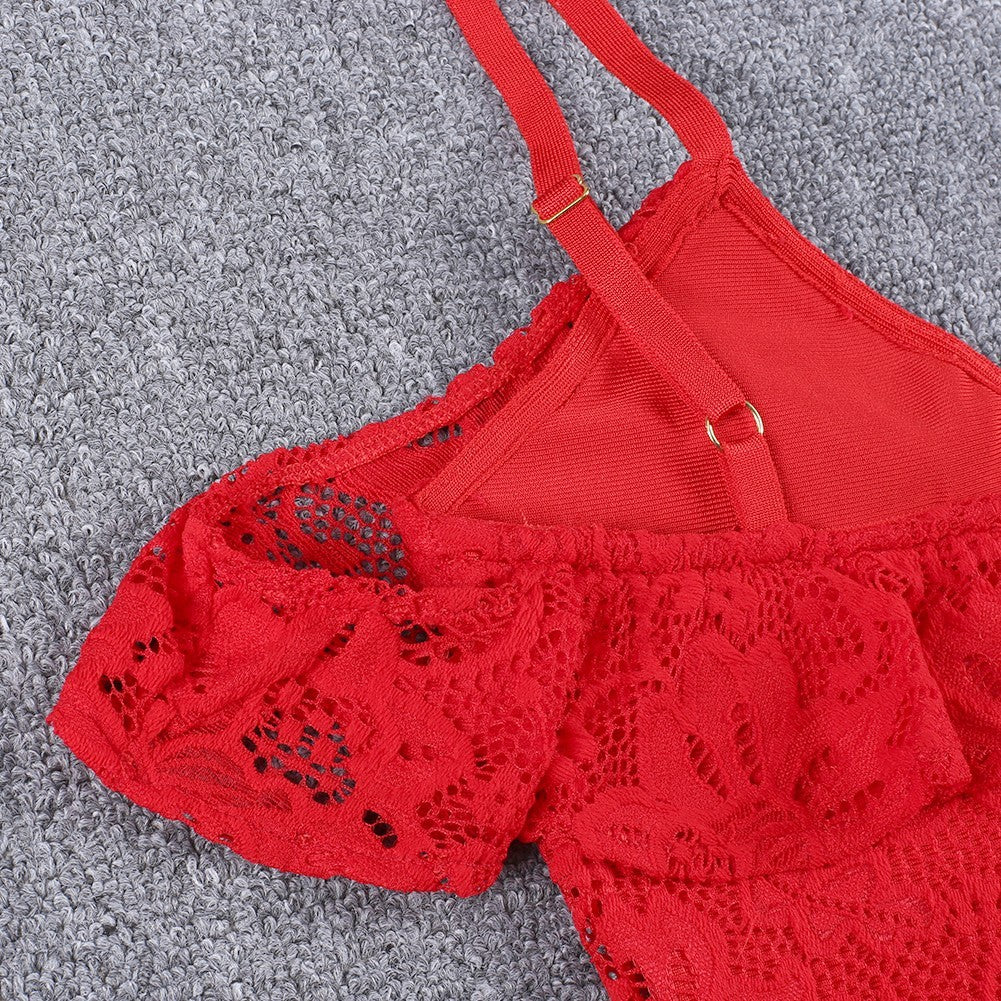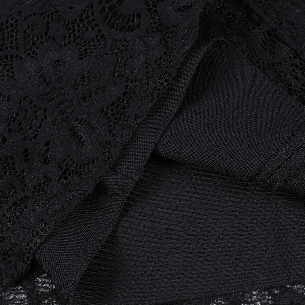 Strappy Short Sleeve Lace Mini Bodycon Dress HJ638