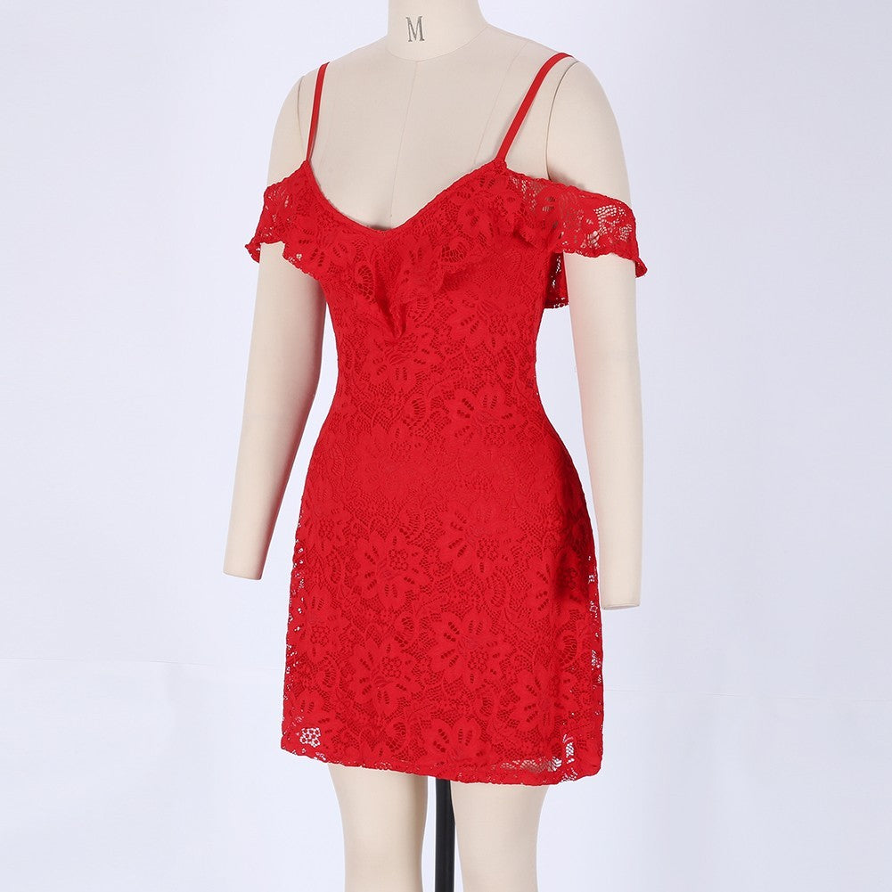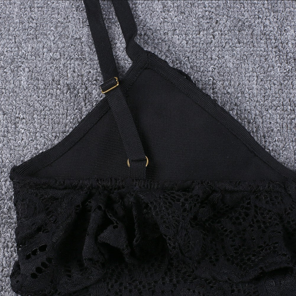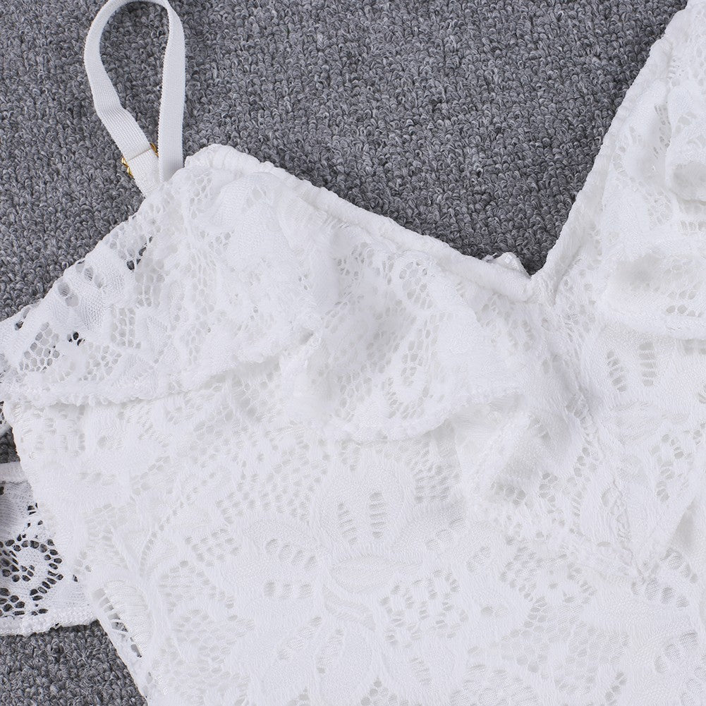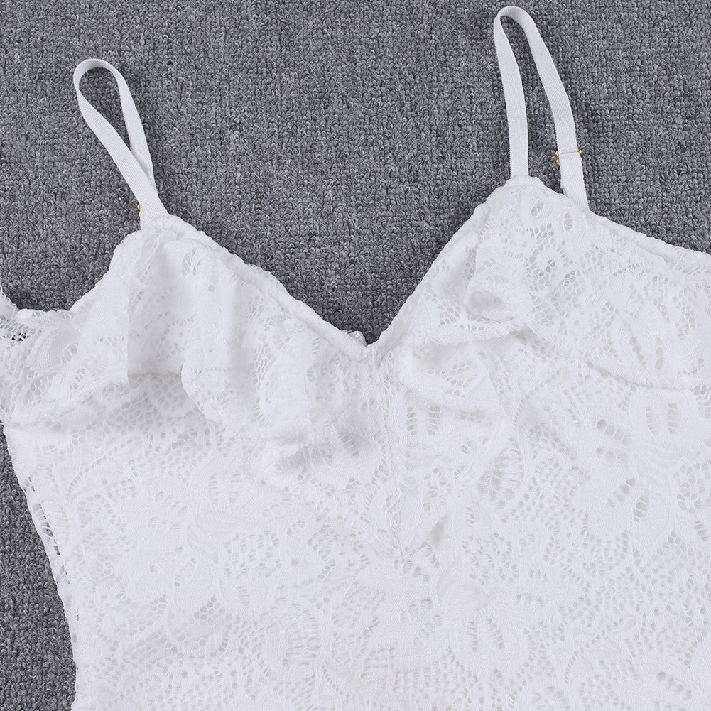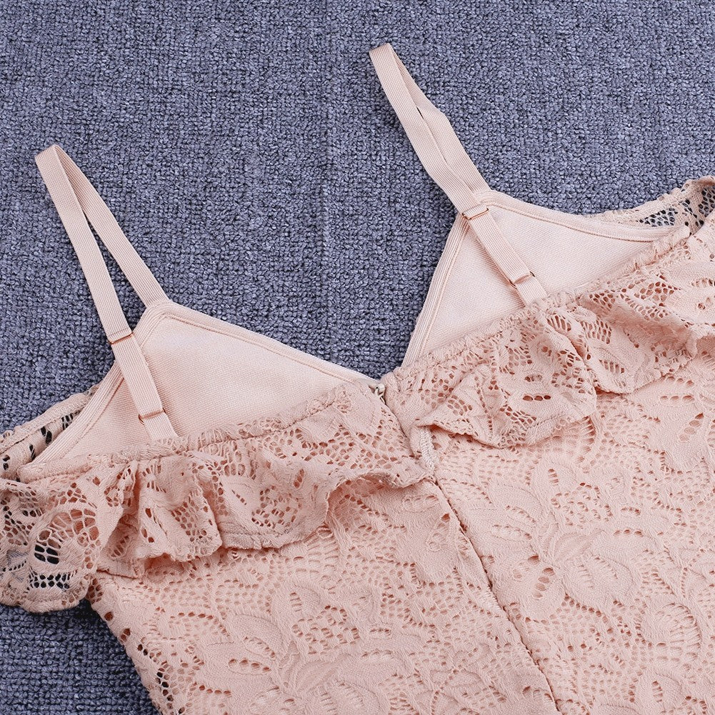 Strappy Short Sleeve Lace Mini Bodycon Dress HJ638