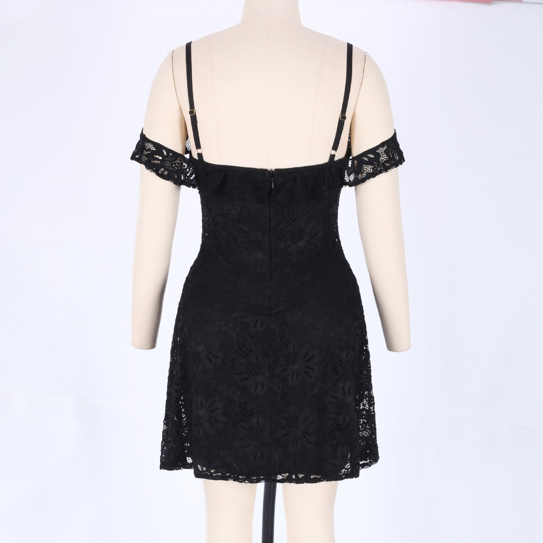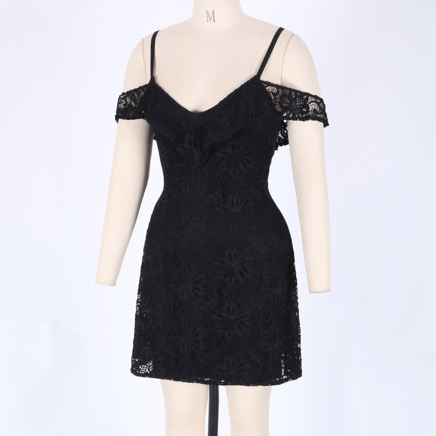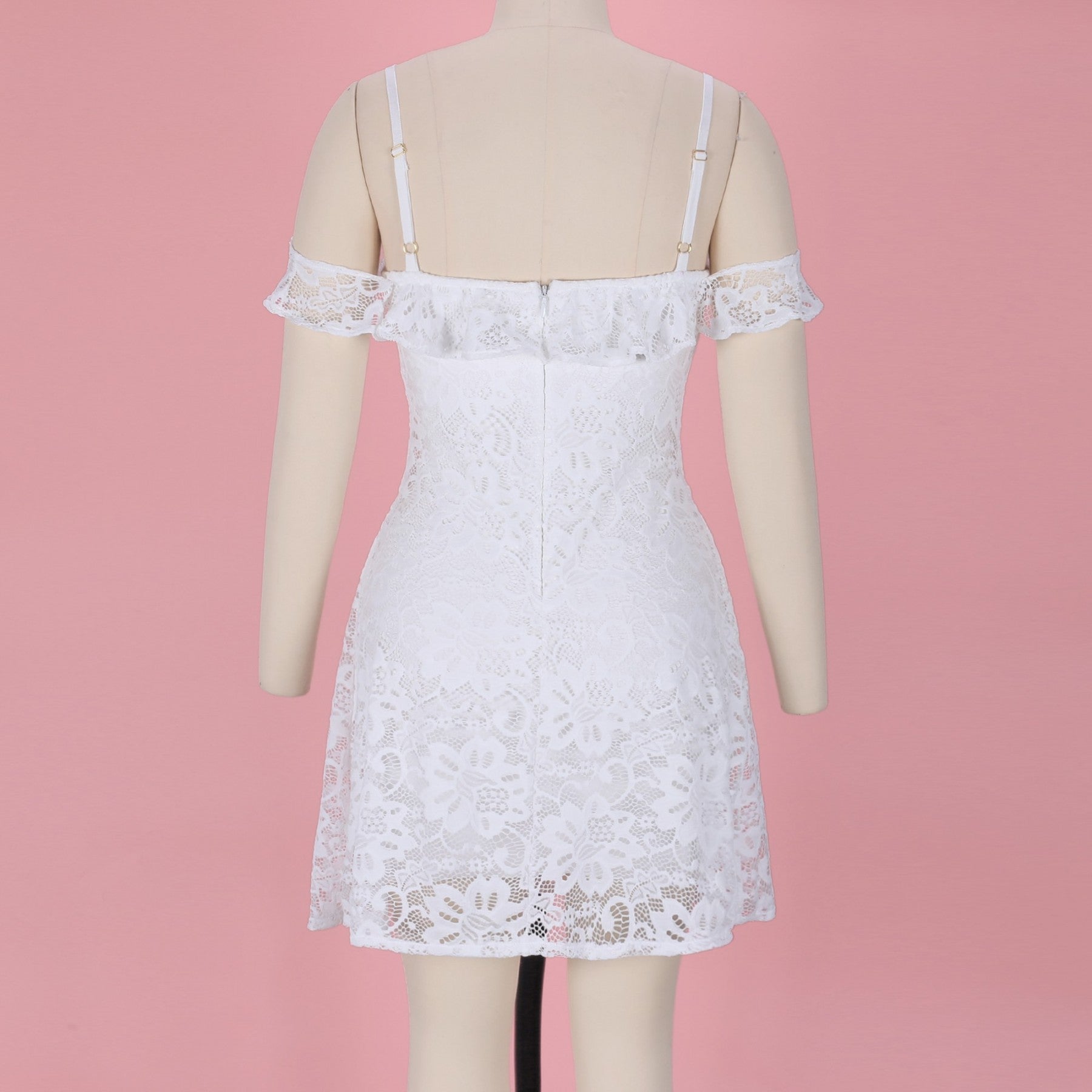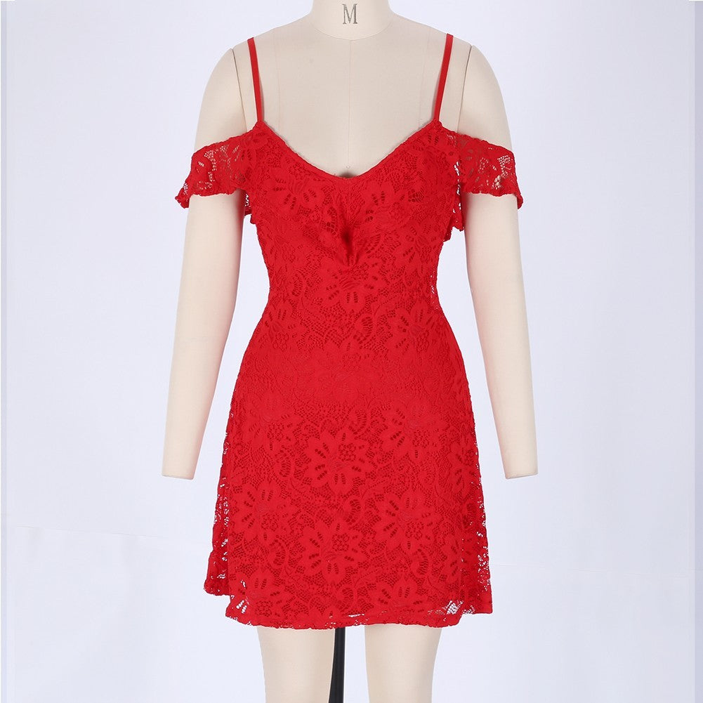 Strappy Short Sleeve Lace Mini Bodycon Dress HJ638