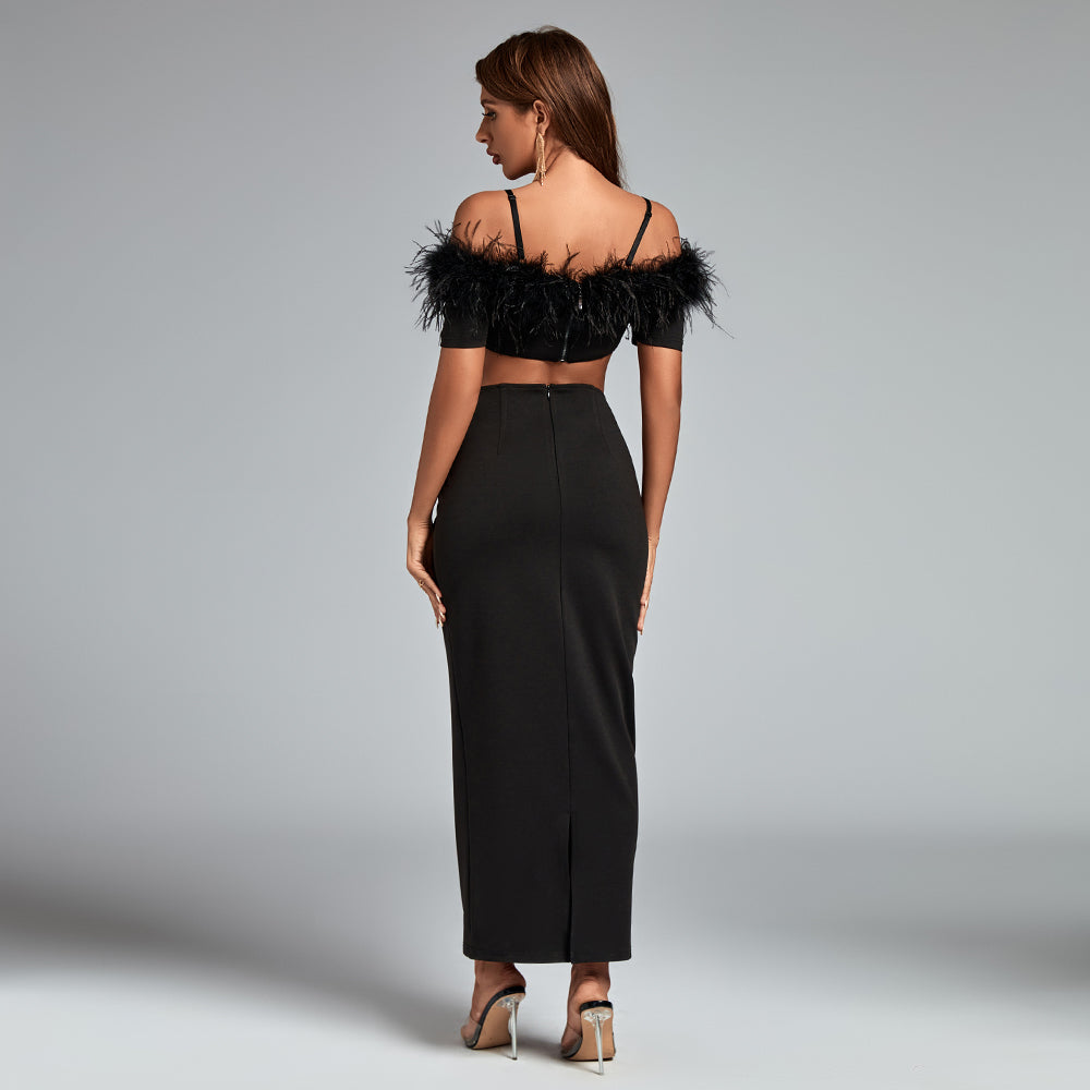 Strappy Feather Short Sleeve Maxi Exposed Waist Dress