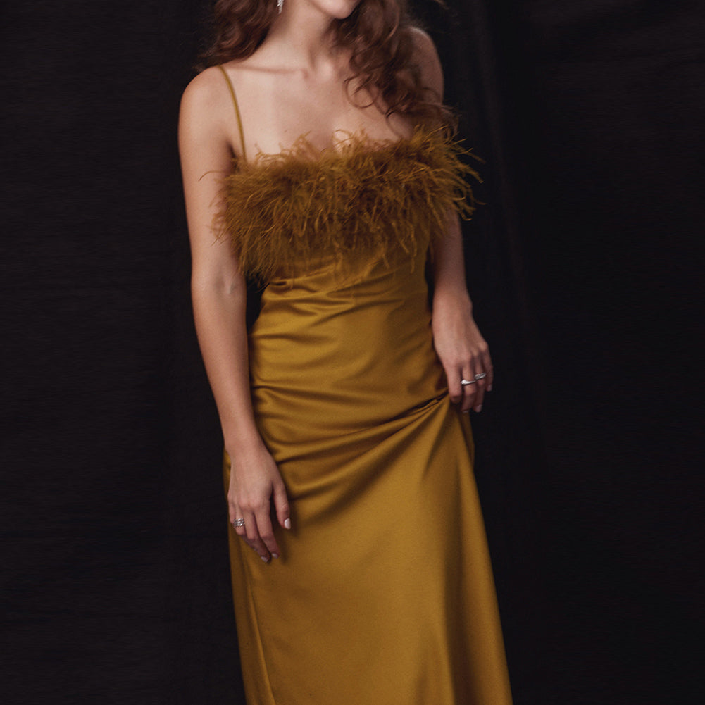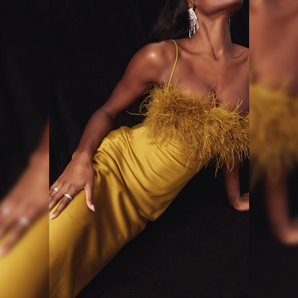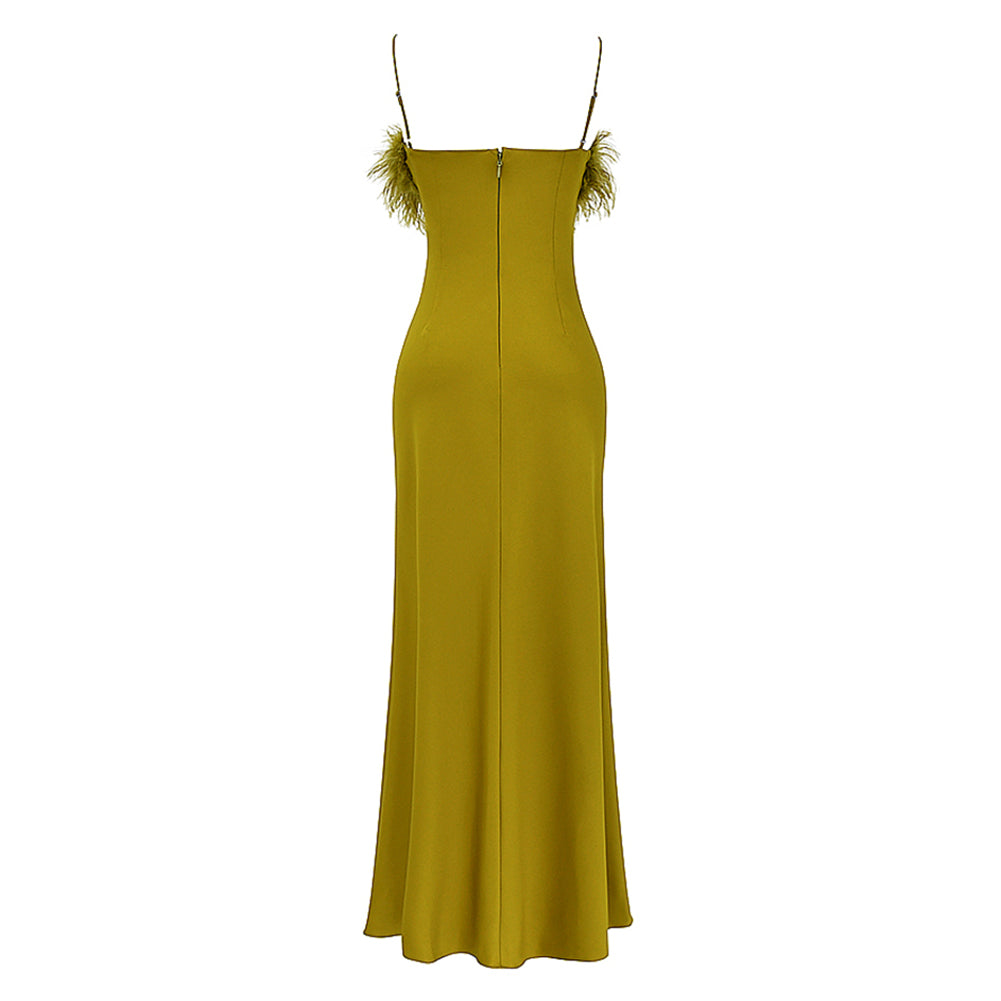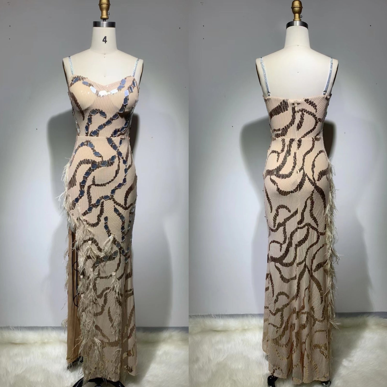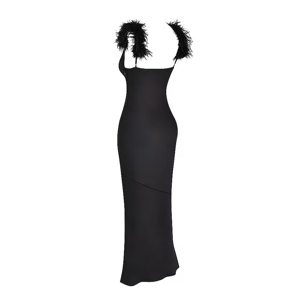 Strappy Sleeveless Feather Maxi Bodycon Dress