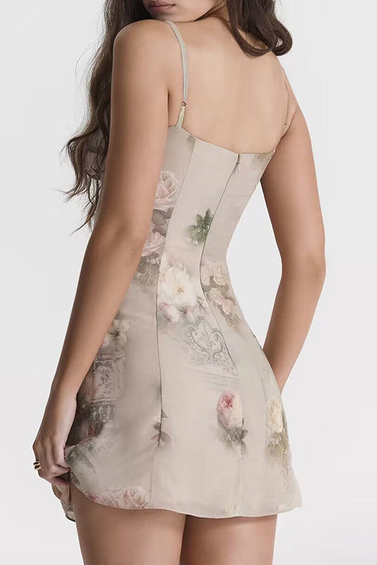 Strappy Sleeveless Floral Mini Bodycon Dress
