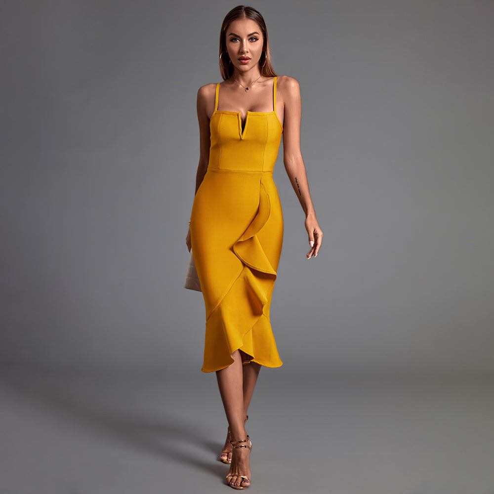 Strappy Sleeveless Frill Over Knee Bandage Dress
