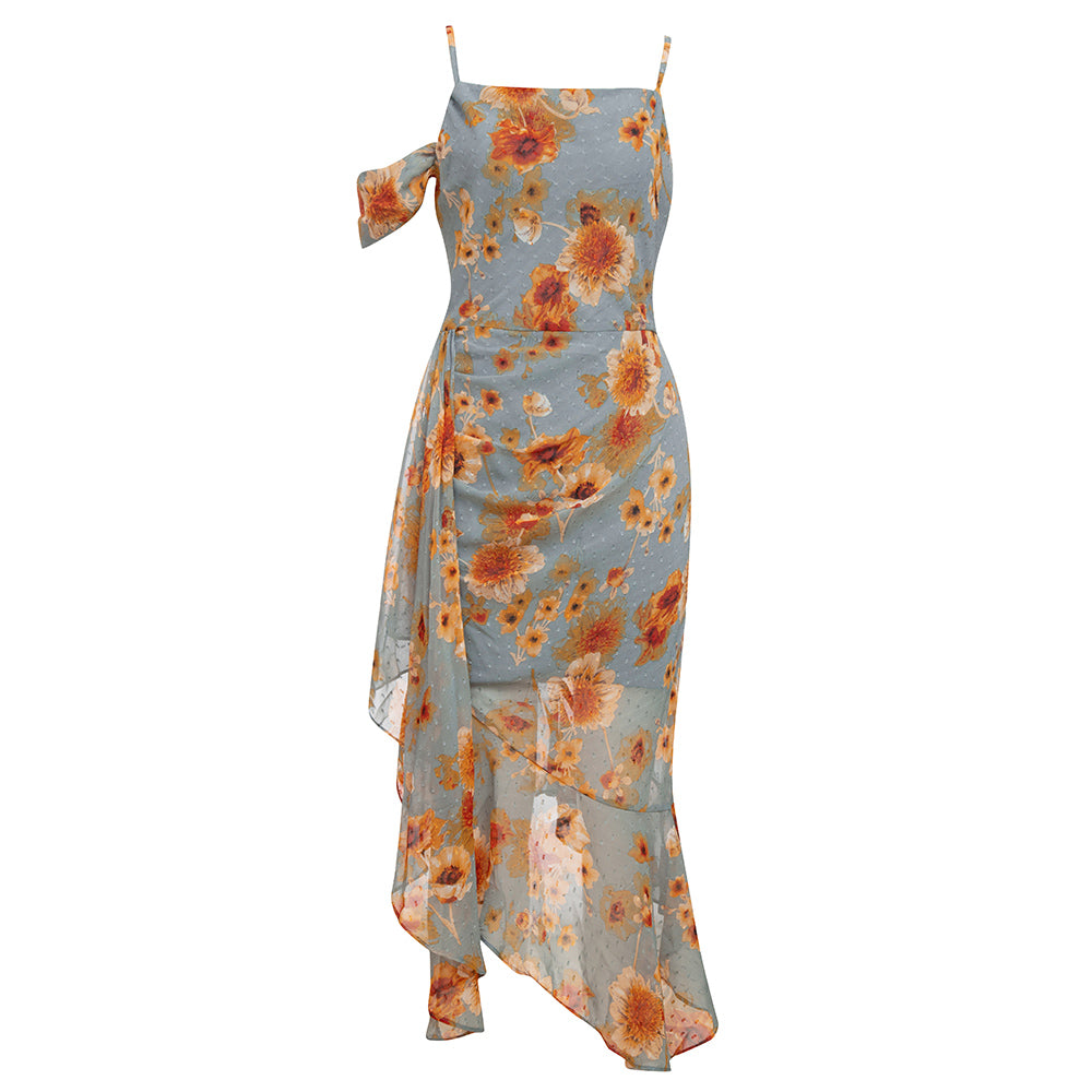 Strappy Sleeveless Midi Frill Bodycon Dress