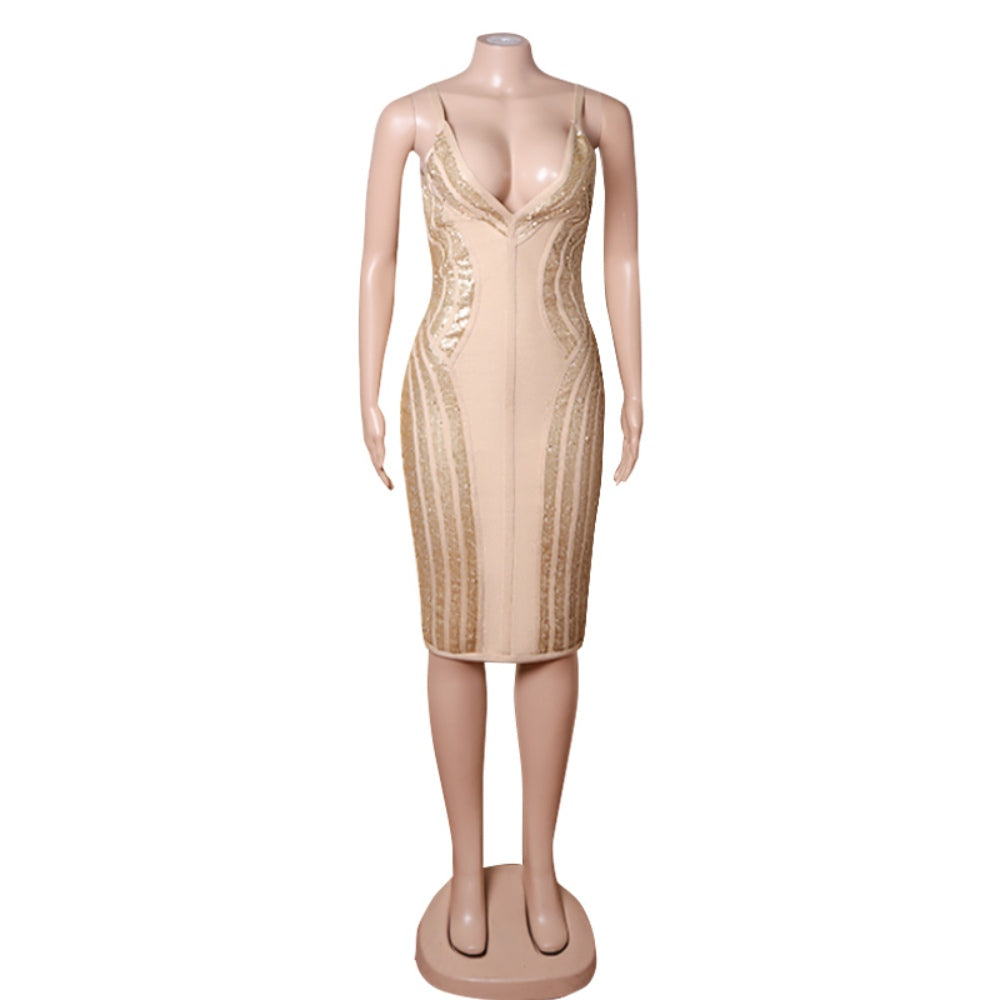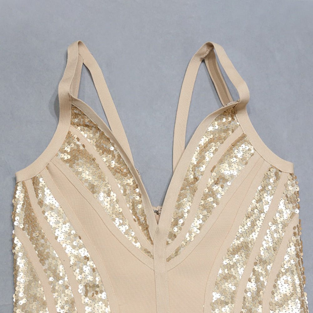 Strappy Sleeveless Midi Sequined Bandage Dress