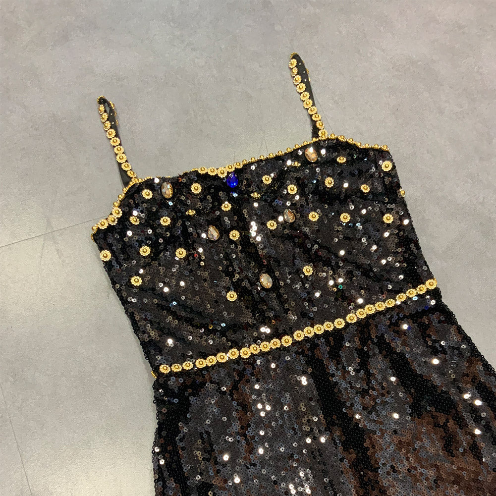 Strappy Sleeveless Midi Sequined Bodycon Dress