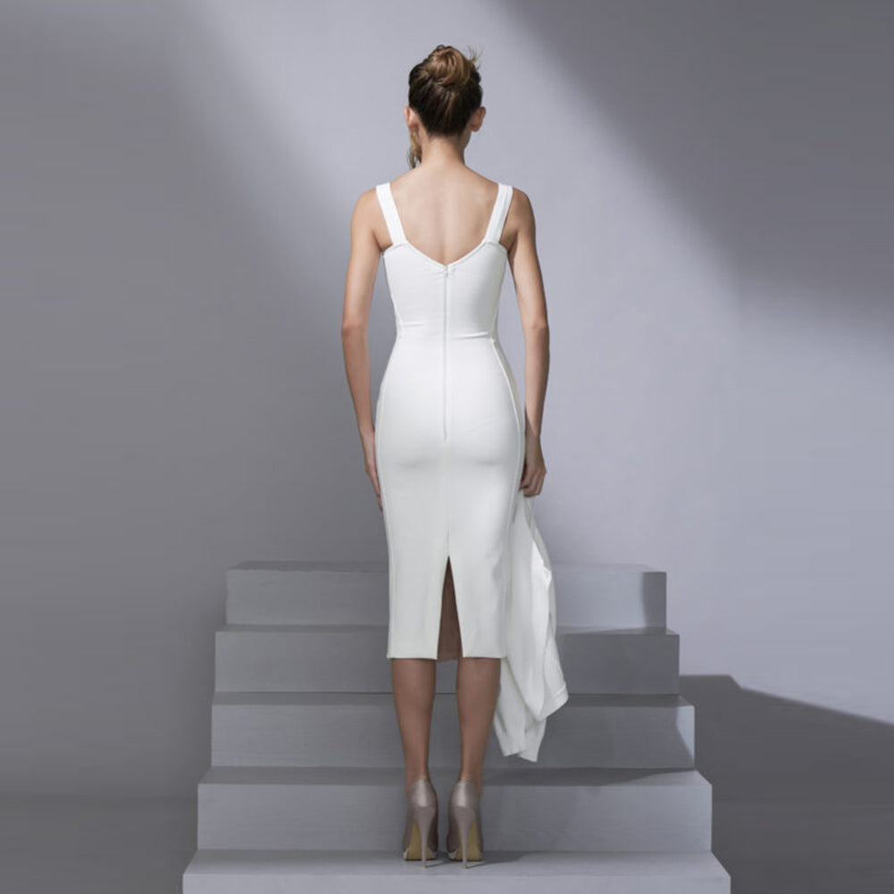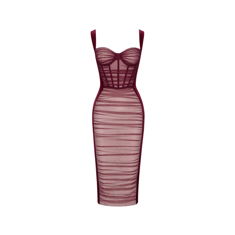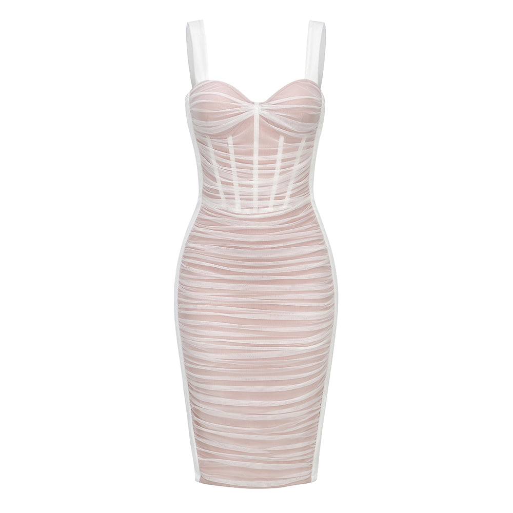 Strappy Sleeveless Midi Wrinkled Bodycon Dress KLYF601