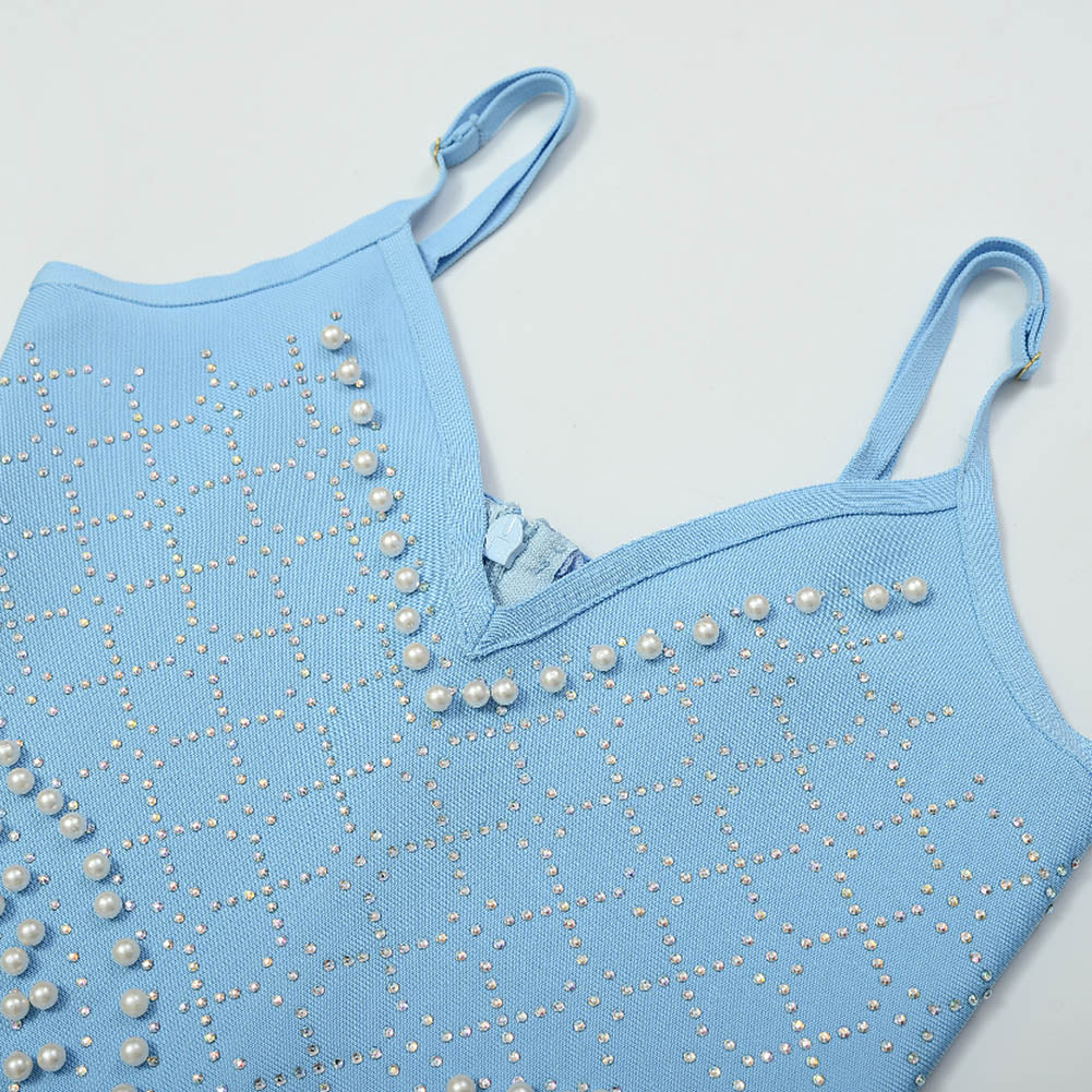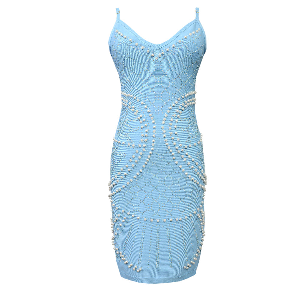 Strappy Sleeveless Mini Bubble Beads Bandage Dress