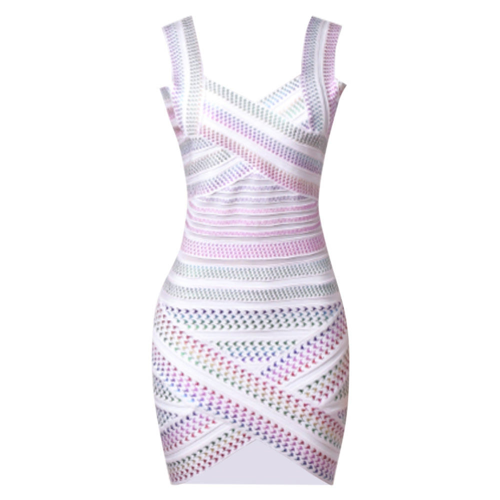 Strappy Sleeveless Mini Houndstooth Bandage Dress