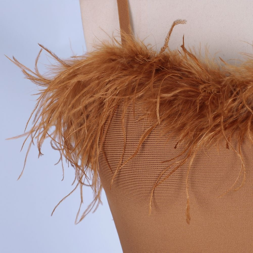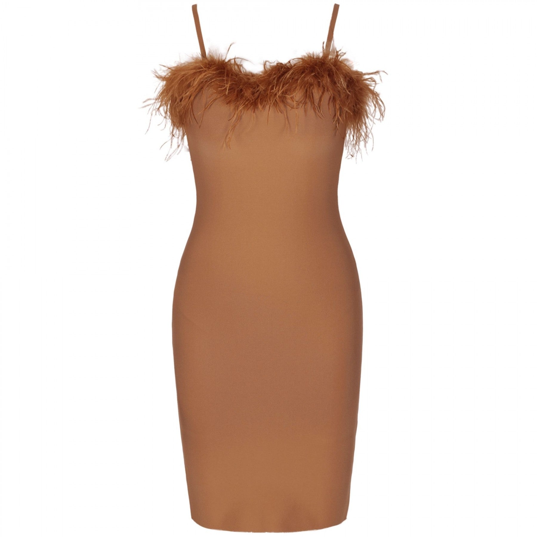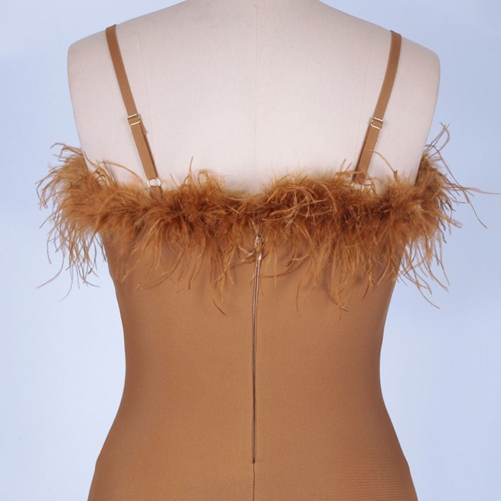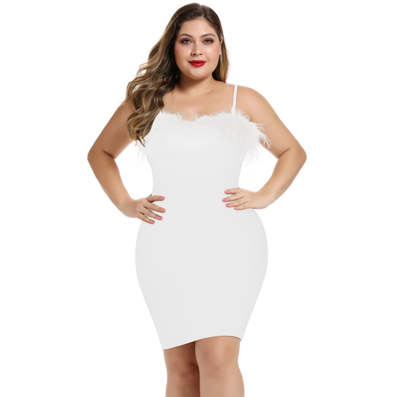Plus Size Strappy Plume Mini Bandage Dress DPF19177