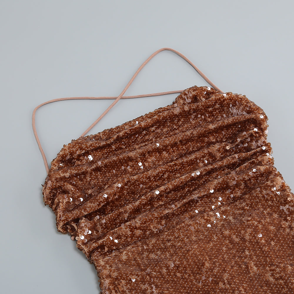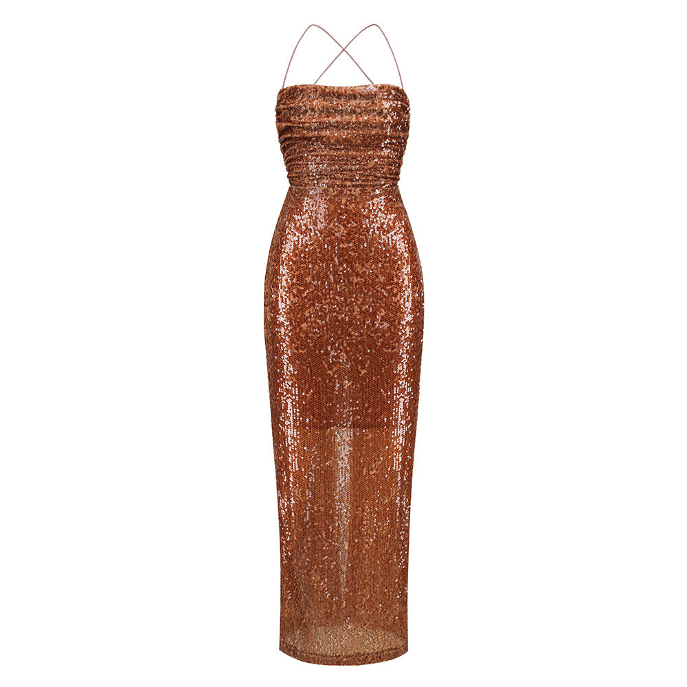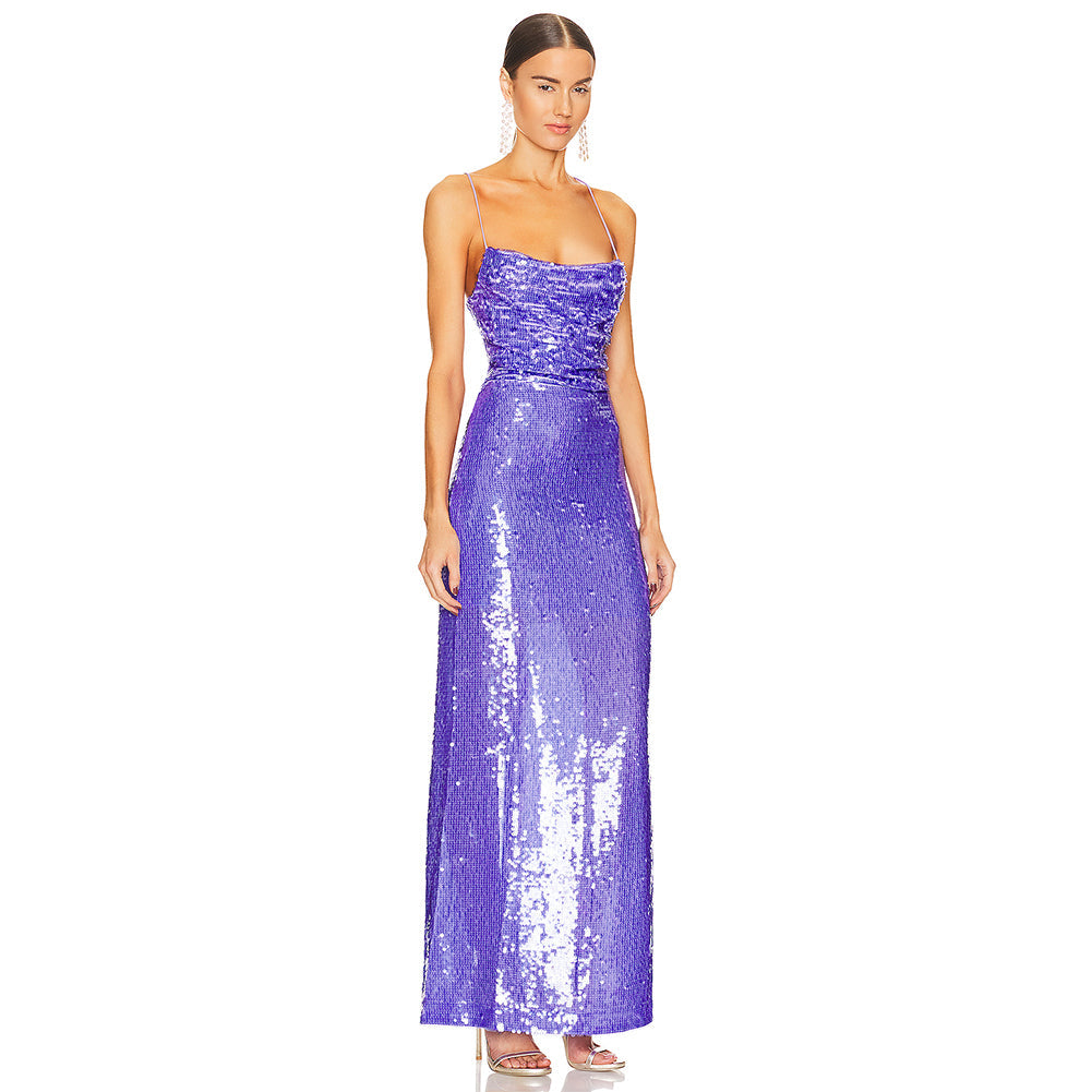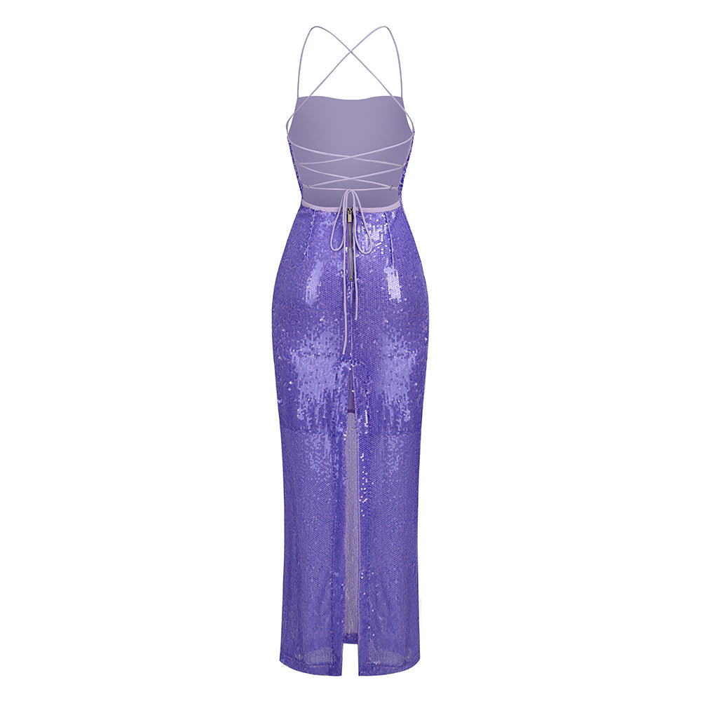 Strappy Sleeveless Sequins Maxi Bodycon Dress
