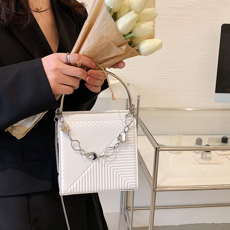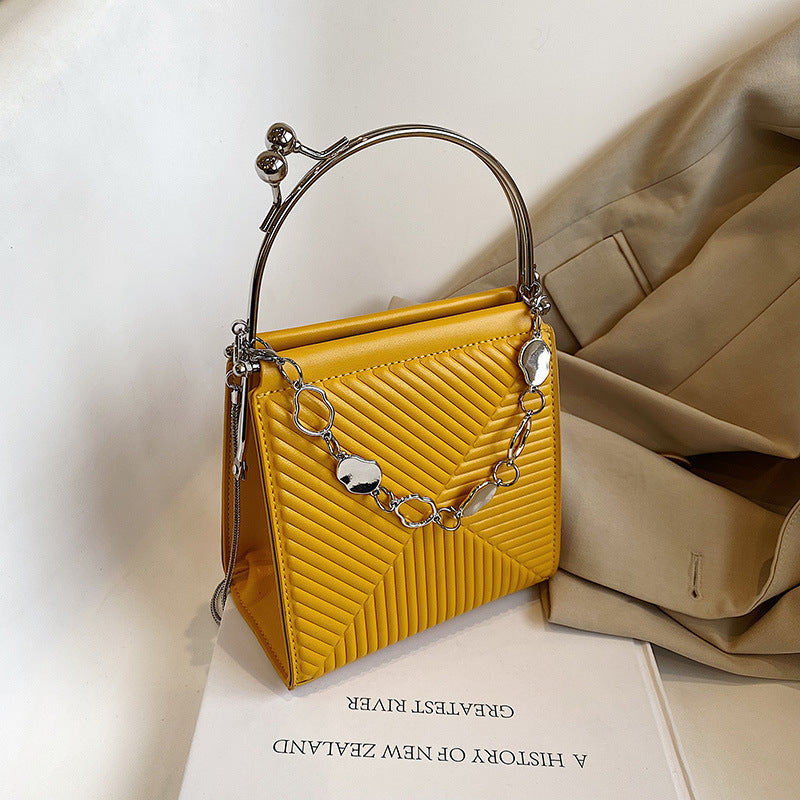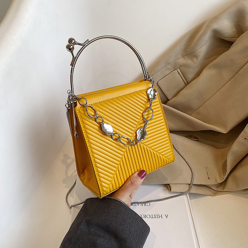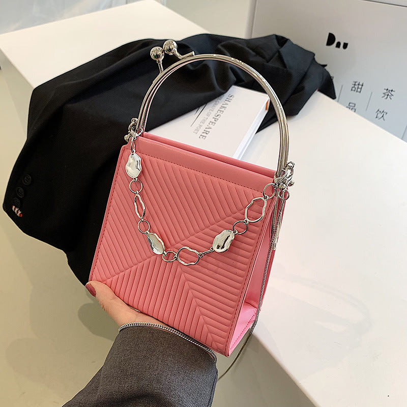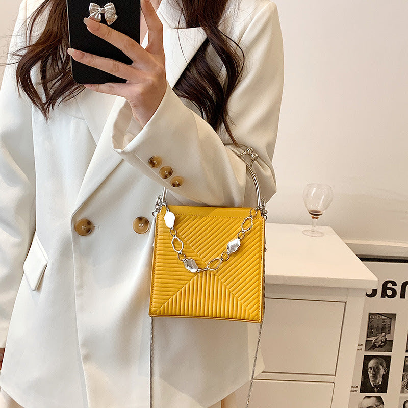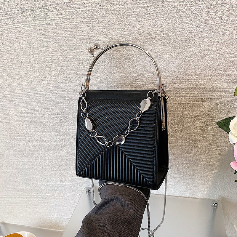 Striped Vintage Clip Buckle Shoulder Square Bag