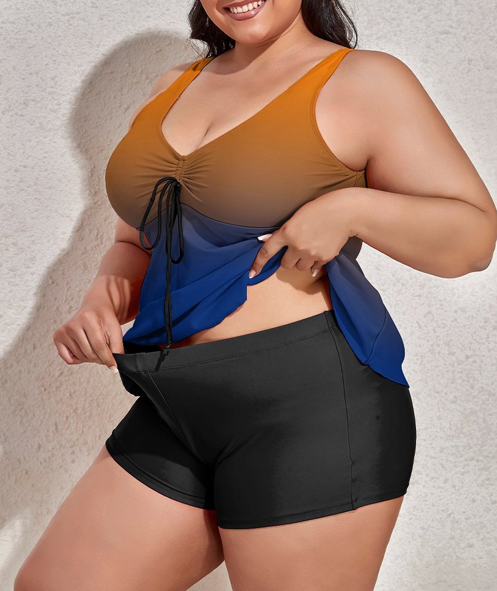 - ¡¾Versatile Style¡¿Floral print. gradient. tie dye. plus size athletic tank top with regular boyshort. front bowknot drawstring. flowy design show your body shape beautifully. Swimdress swimsuits for women designed with padded bra without underwire and adjustable straps. better support the chest and shape your body. The athletic swimwear's waistline is improved visually to make you more attractive and elegant.