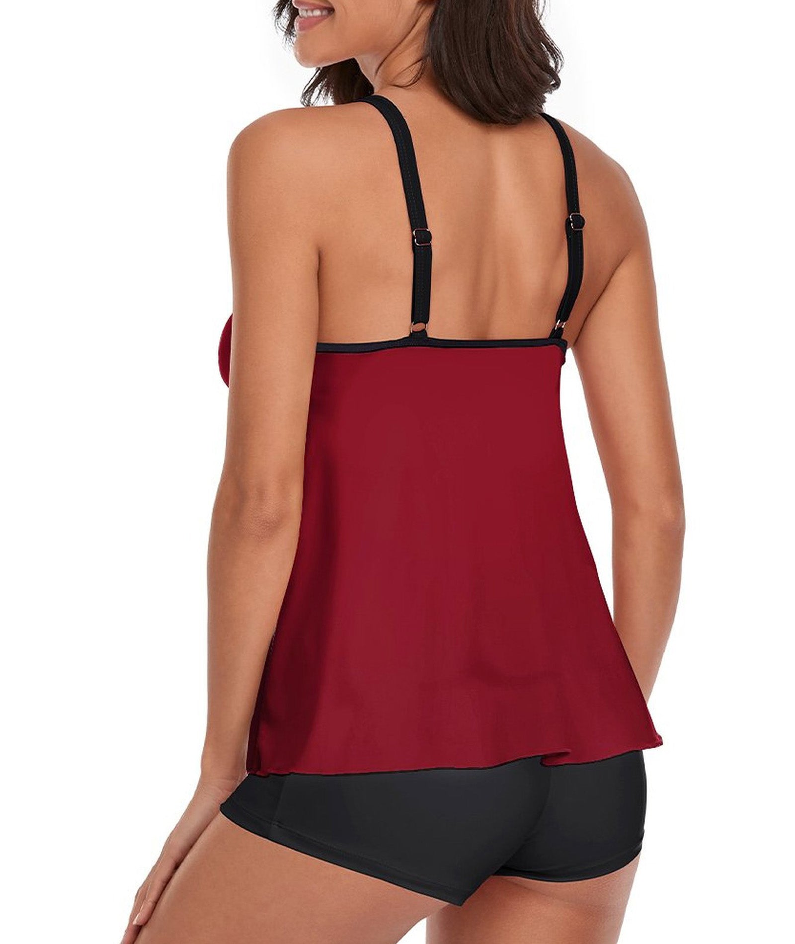 Tankini Red Tank Top Two Piece Bathing Suits with Boyshorts