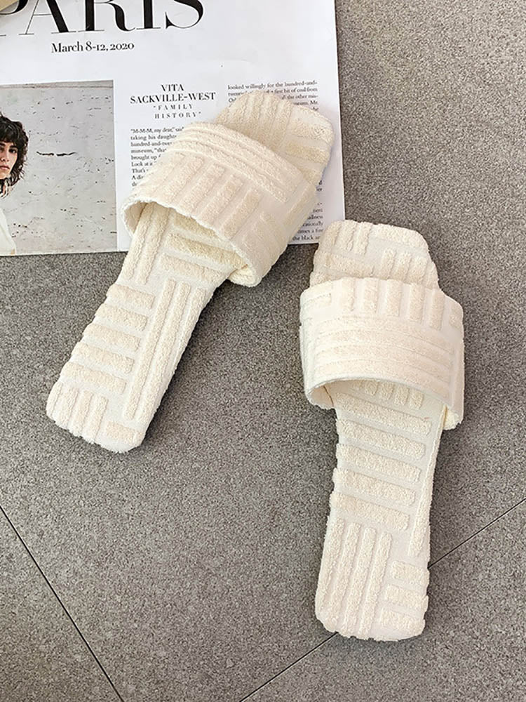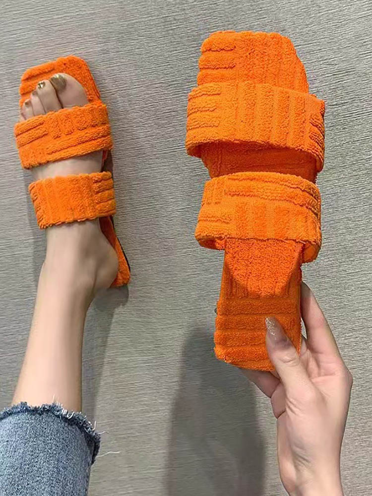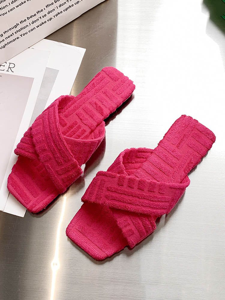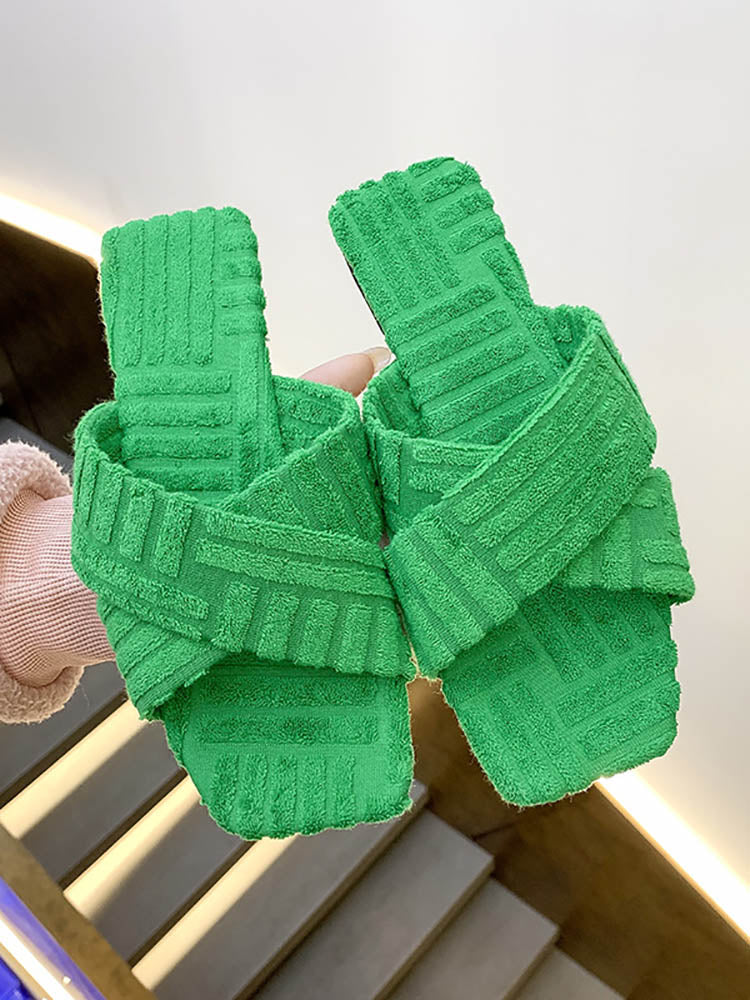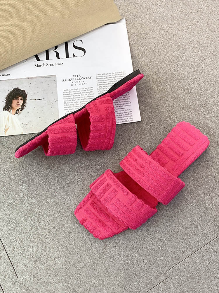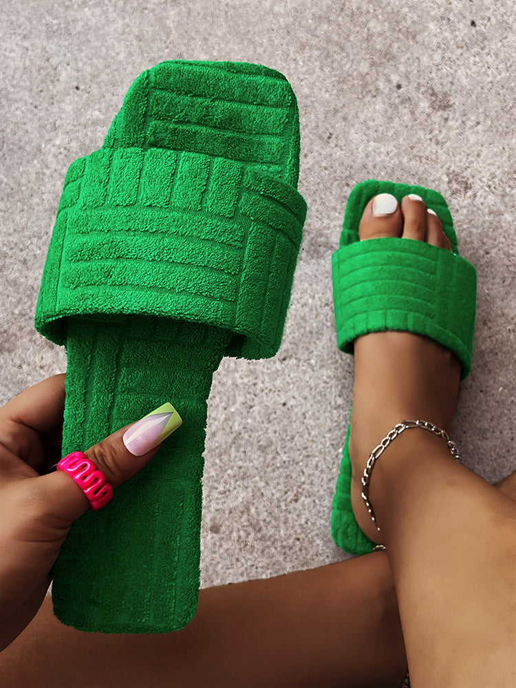 Toweling Flat Heel Slides