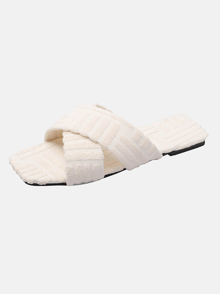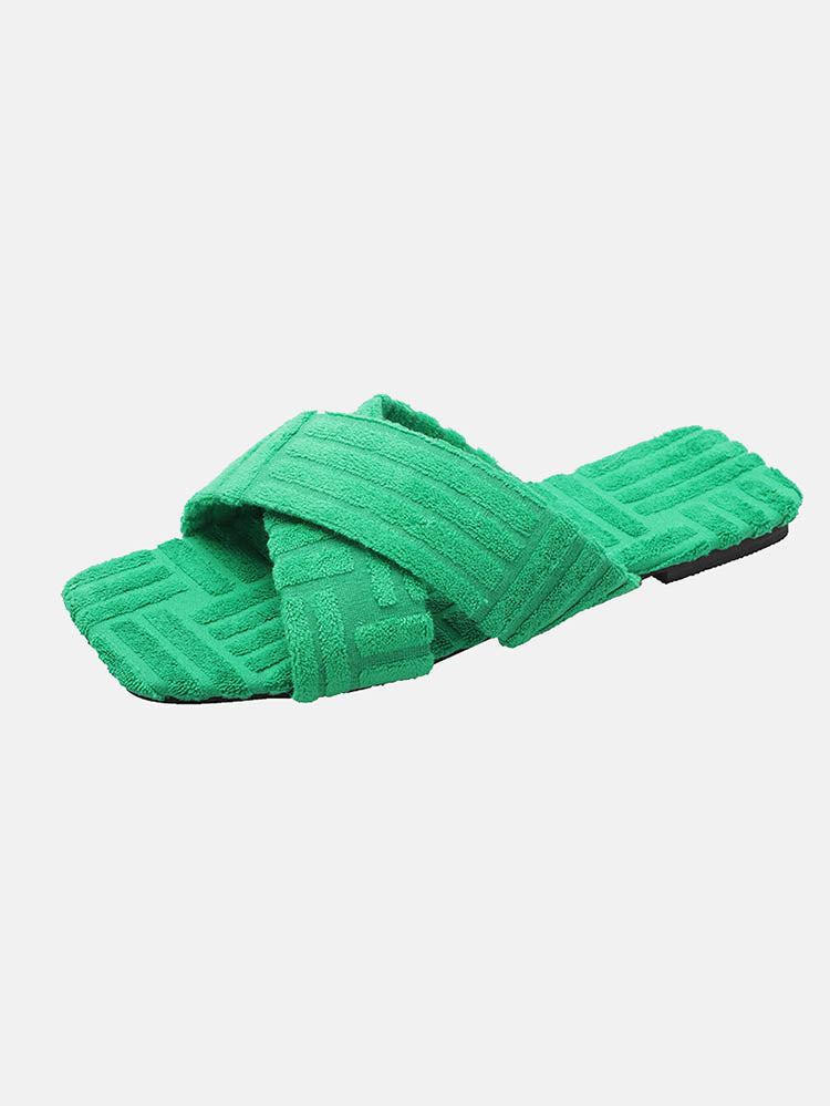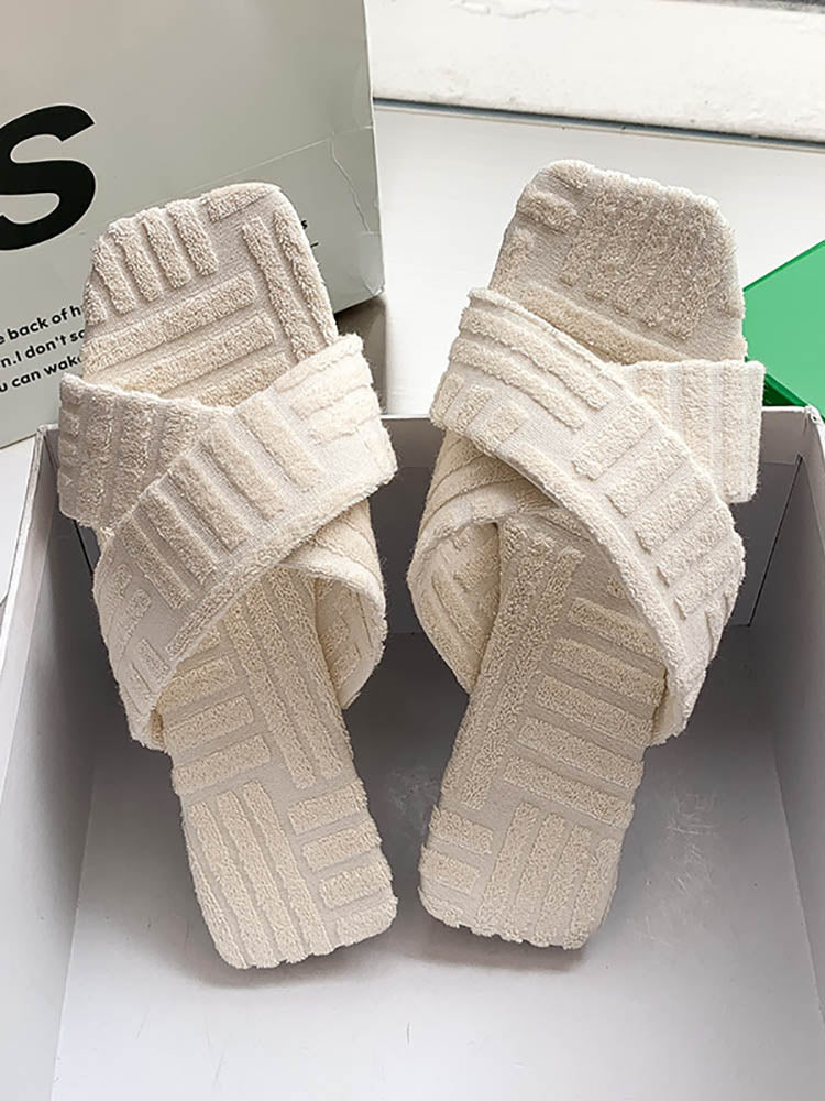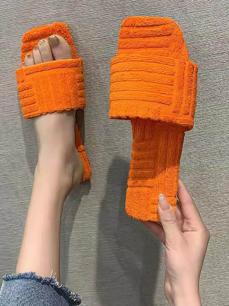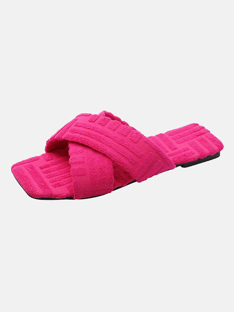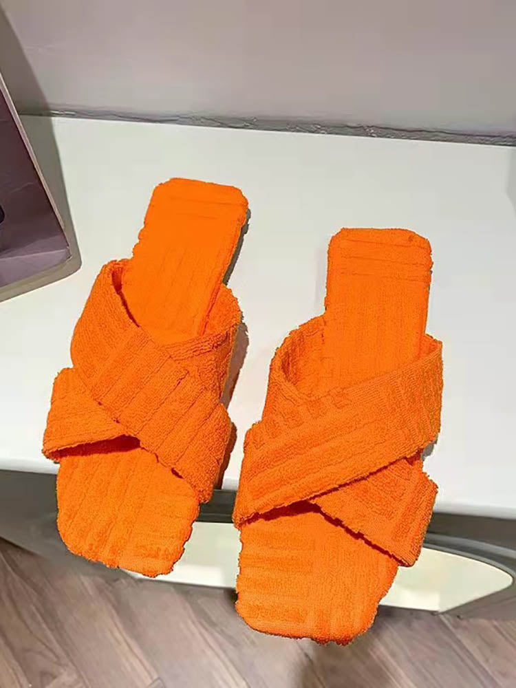 Toweling Flat Heel Slides
