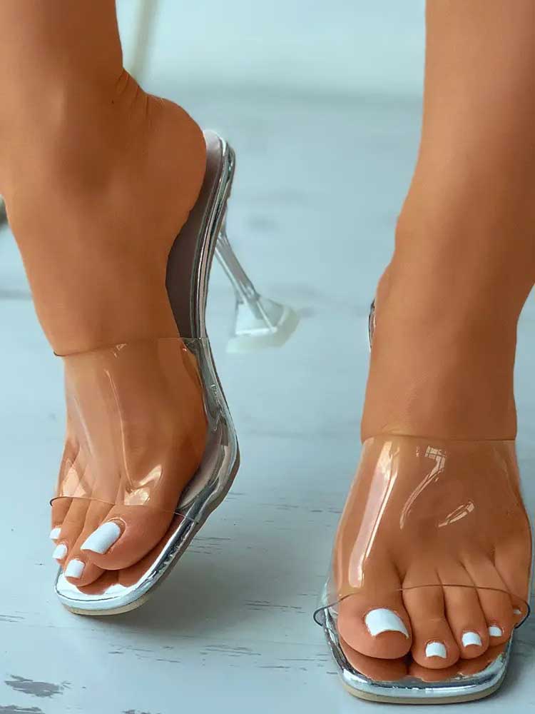 Transparent Pyramid Heel Sandals