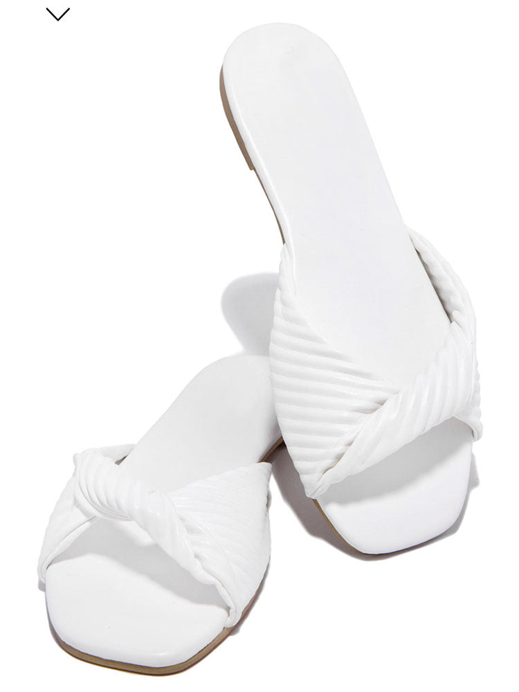 Twisted Square Toe Flat Slides