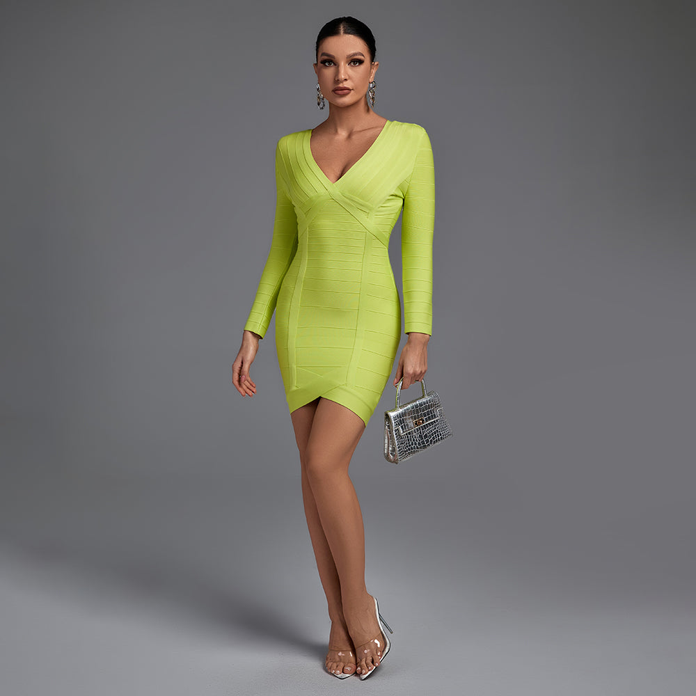 V Neck 3/4 Sleeve Striped Mini Bandage Dress
