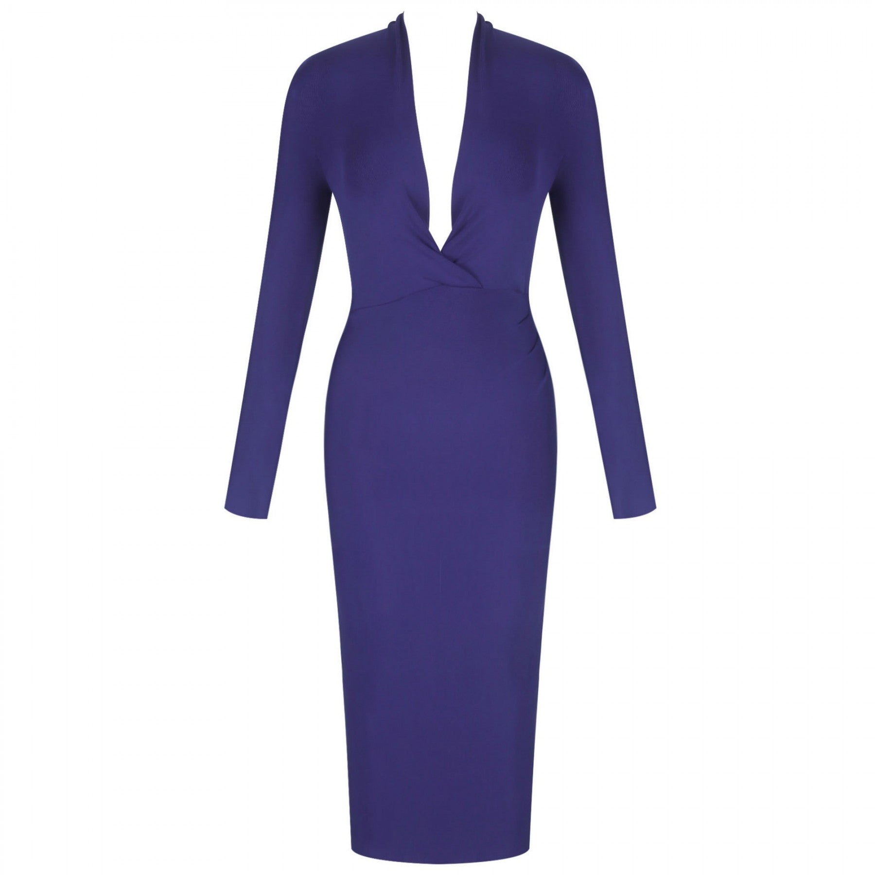 V Neck Long Sleeve Bandage Dress PFHJ649