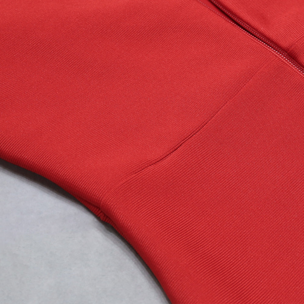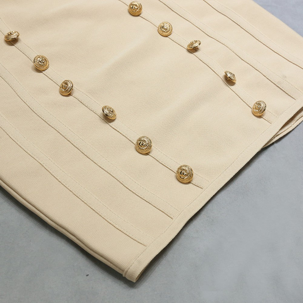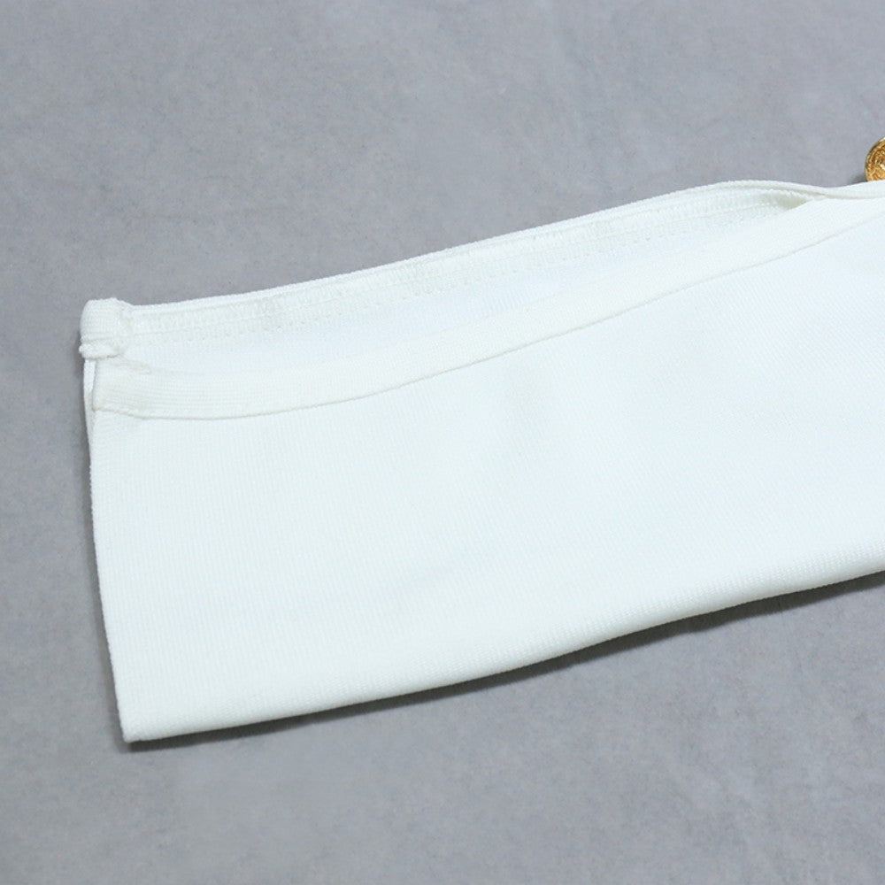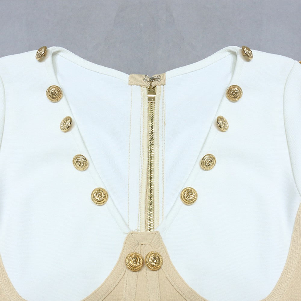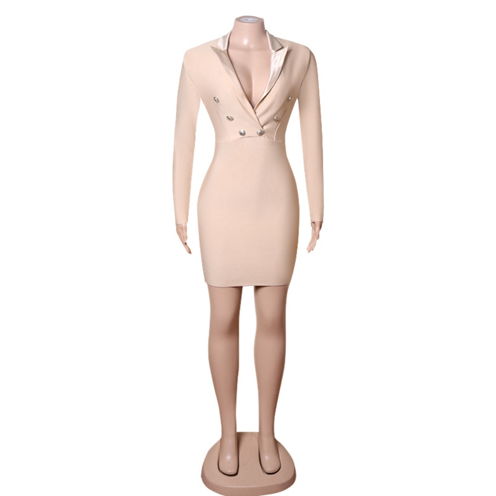 V Neck Long Sleeve Mini Metal Ornamental Buckle Bandage Dress