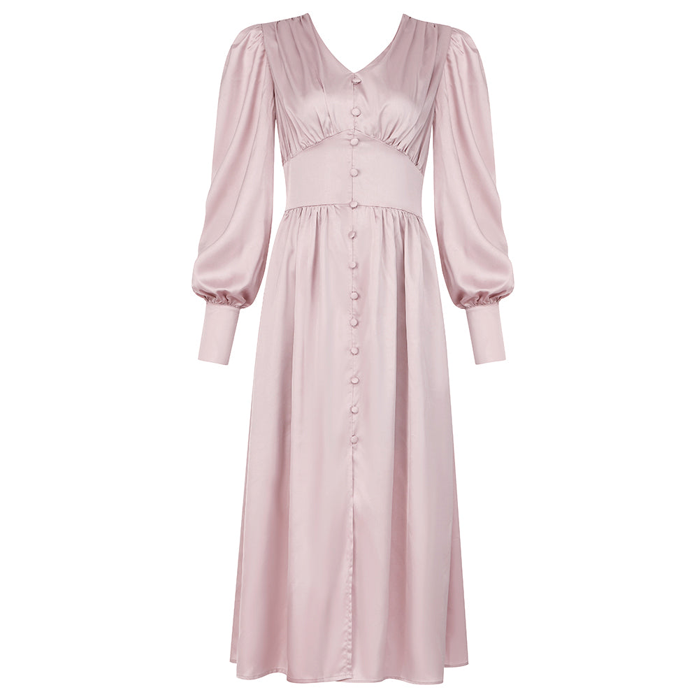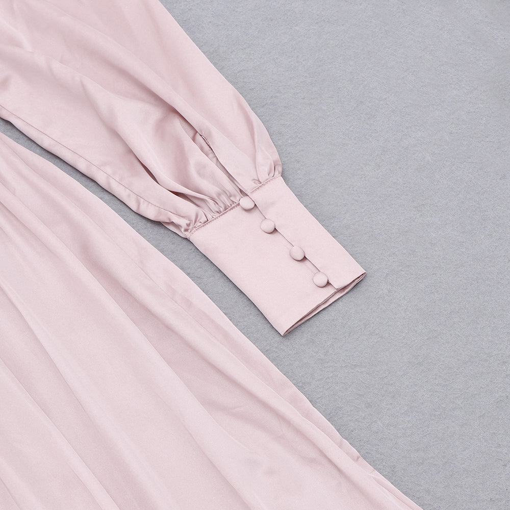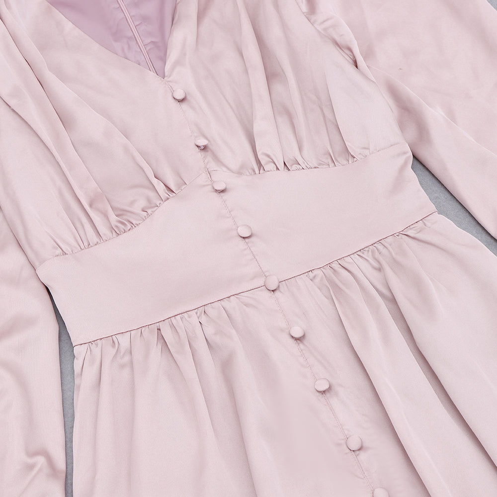 V Neck Long Sleeve Over Knee Balloon Sleeve Bodycon Dress