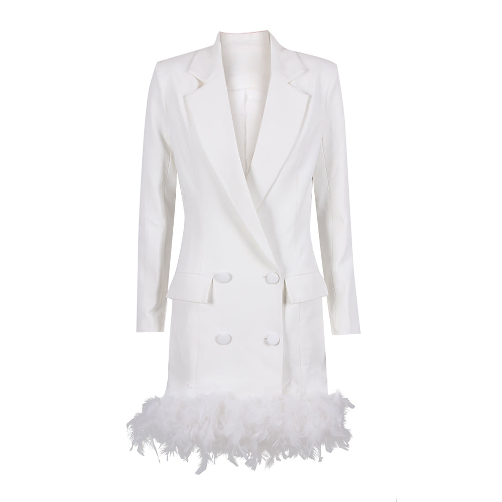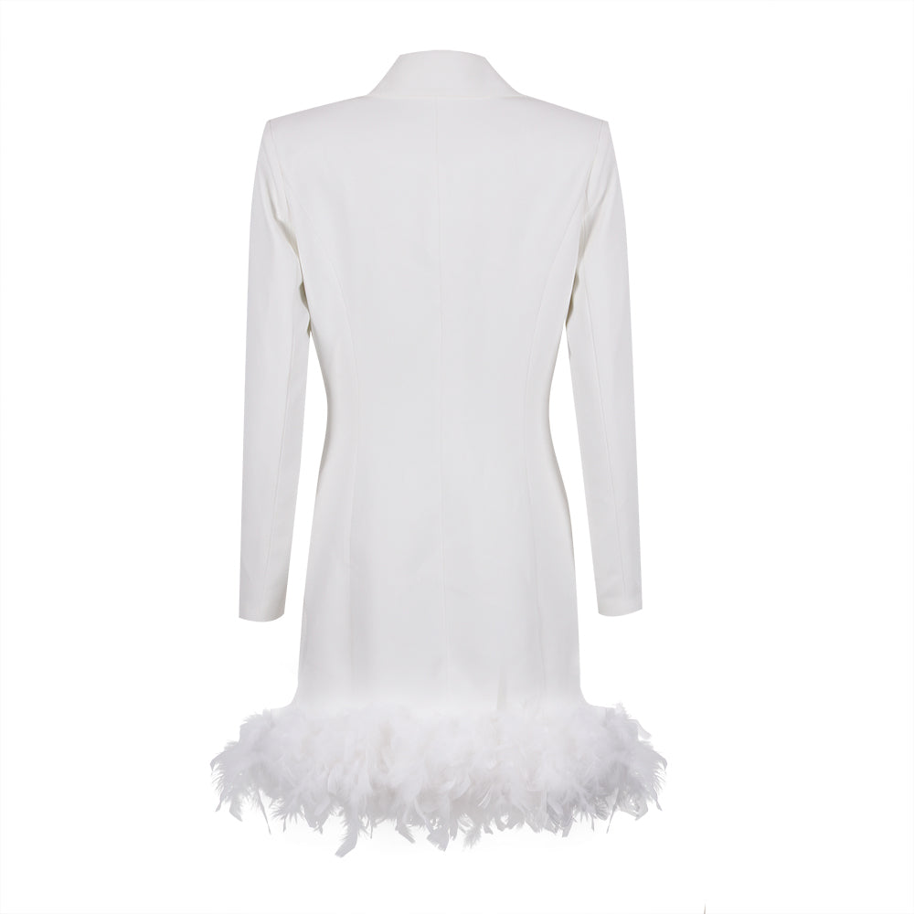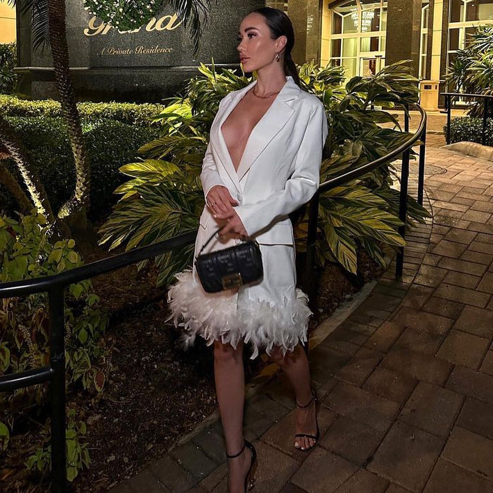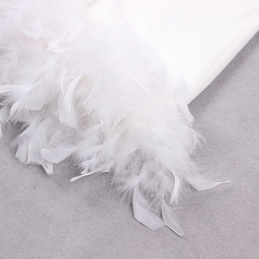 V Neck Long Sleeve Over Knee Feather Bodycon Dress