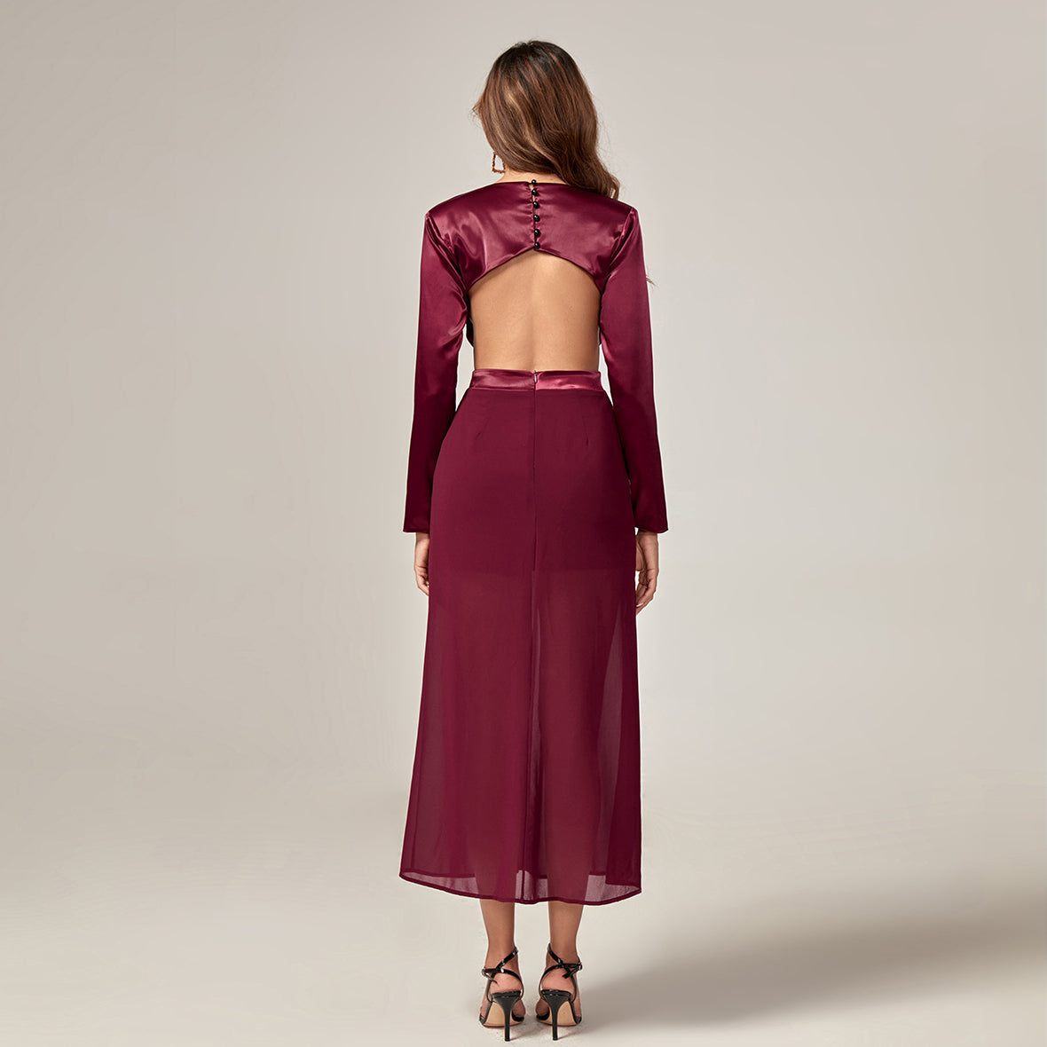 Show off your style in this V Neck Metal Studded Maxi Bodycon Dress. Featuring a flattering V neckline and metal studs. this dress will help you stand out in any crowd. Crafted from a high quality fabric blend for a comfortable and breathable fit. you'll stay stylish wherever you go.