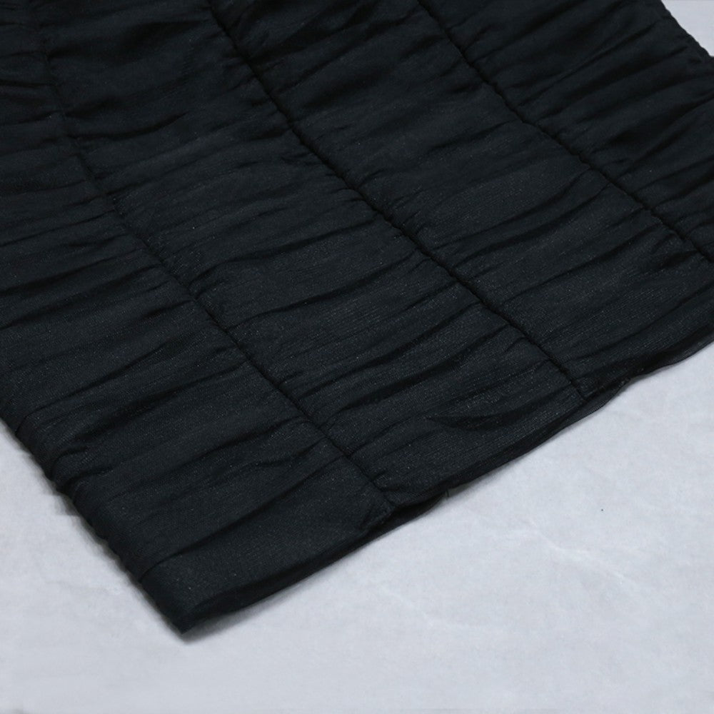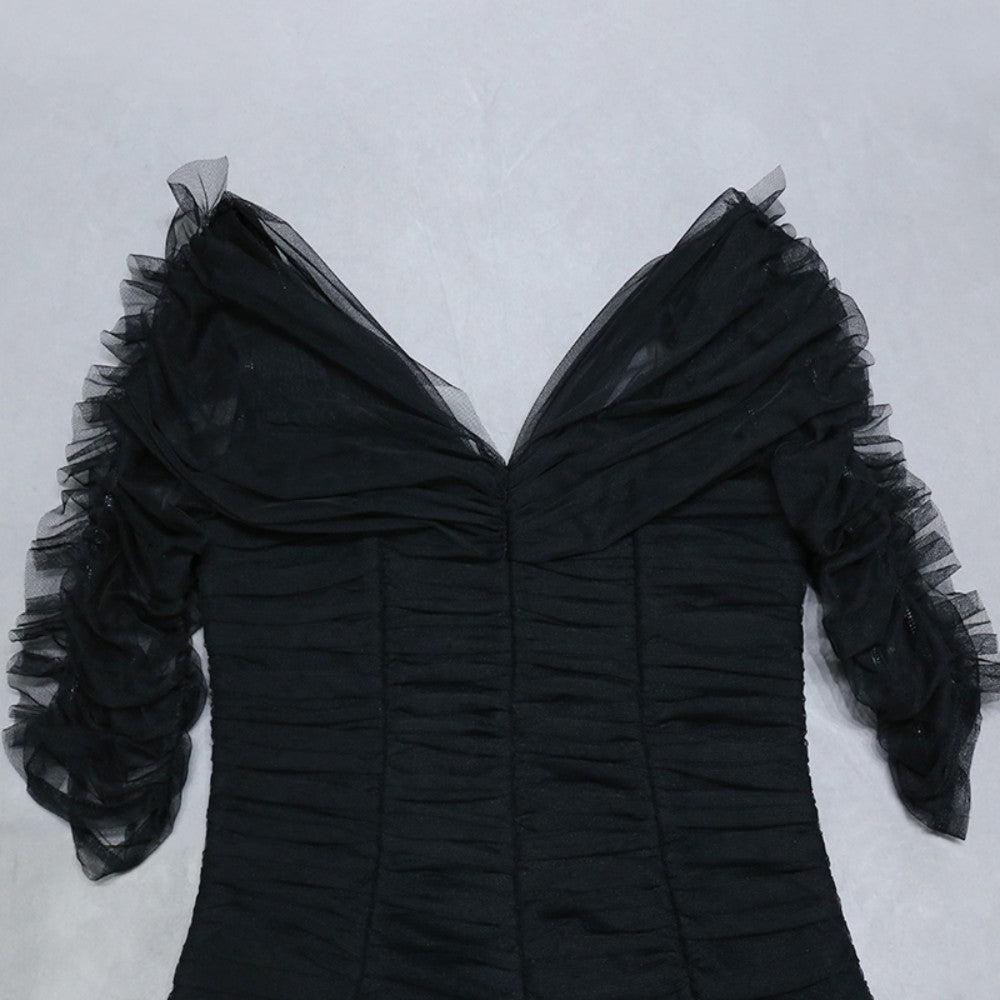 V Neck Mid Sleeve Mini Mesh Bandage Dress