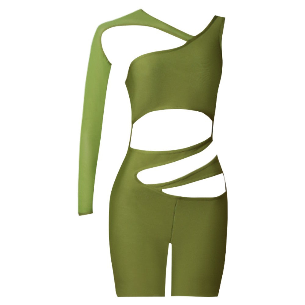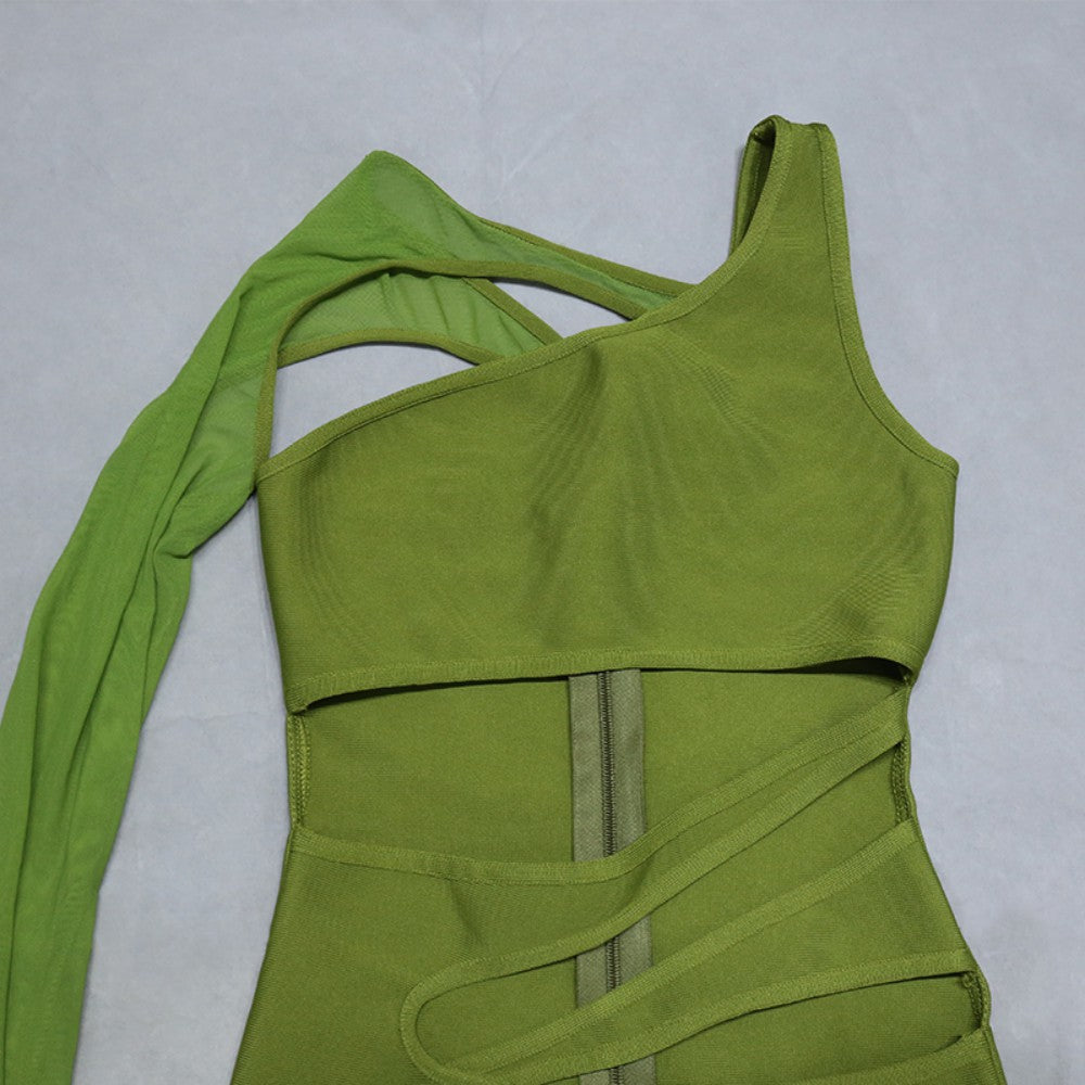 V Neck One Sleeve Cut Out Bandage Jumpsuit