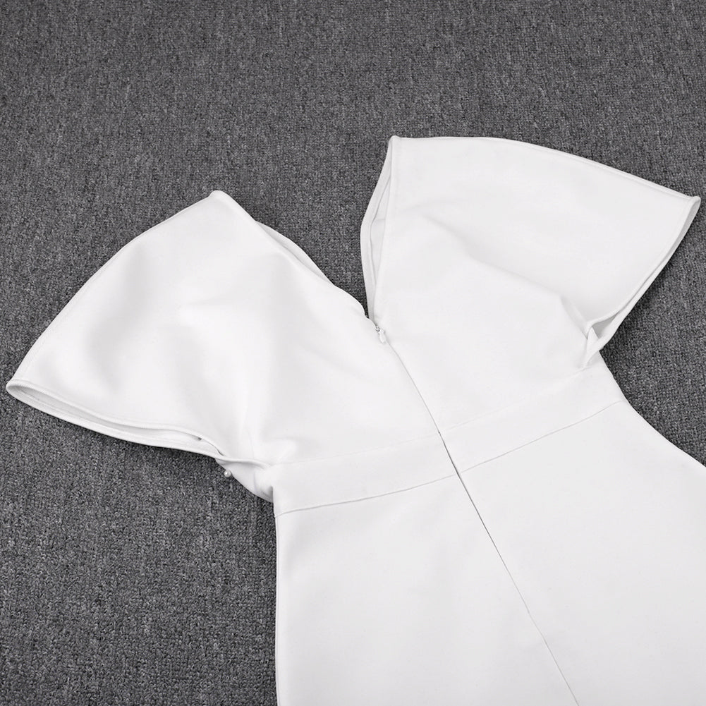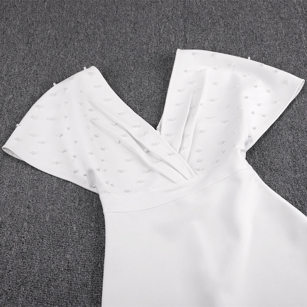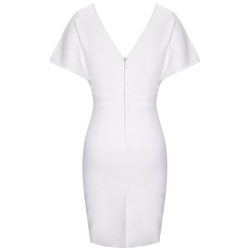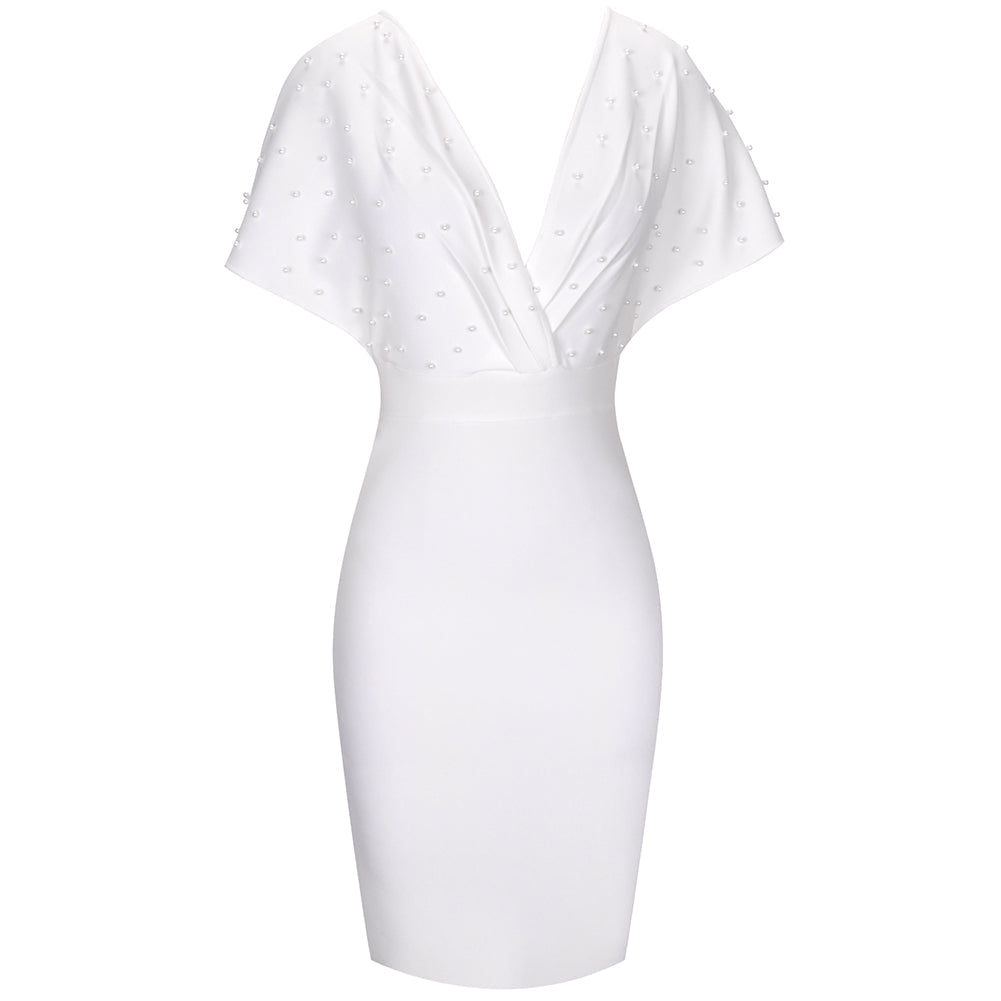 V Neck Short Sleeve Bubble Beads Midi Bandage Dress