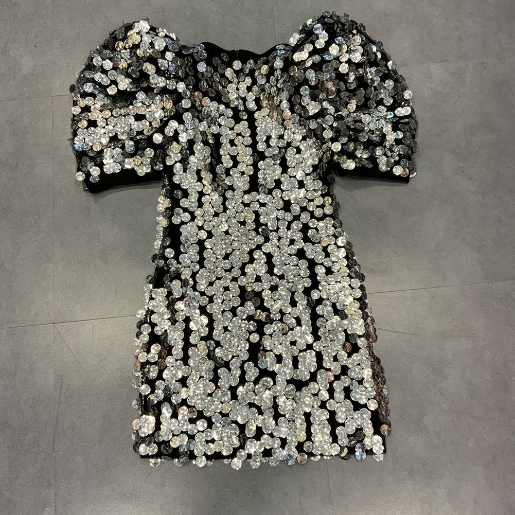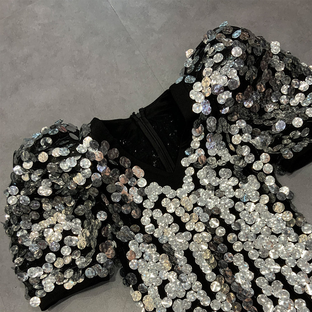 V Neck Short Sleeve Mini Sequined Bodycon Dress