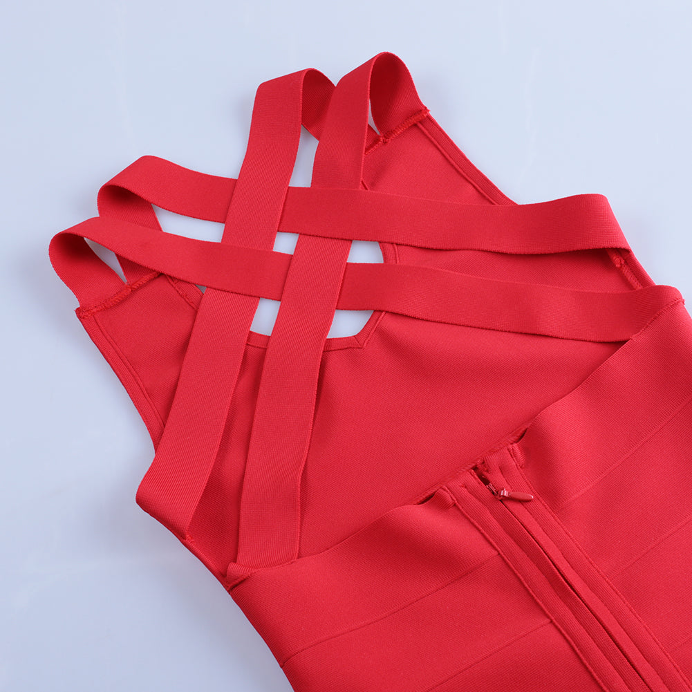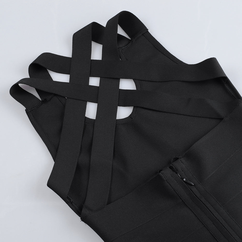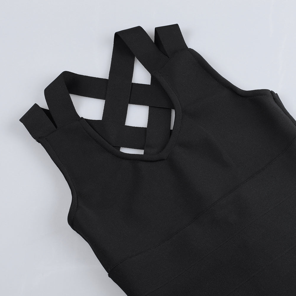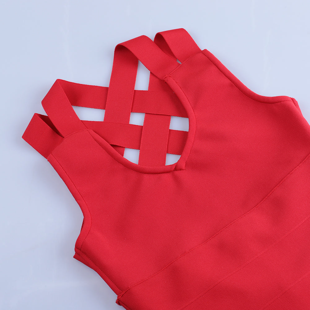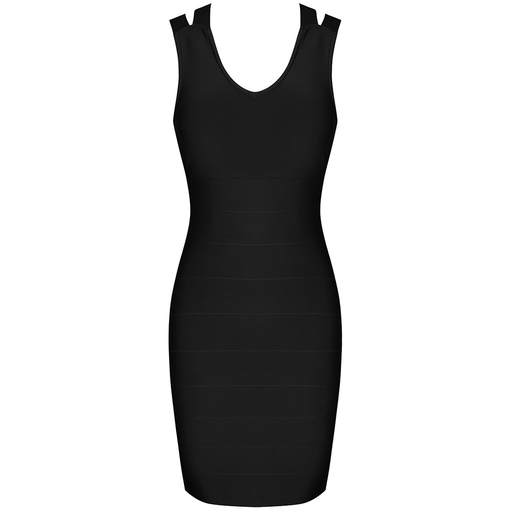 V Neck Sleeveless Hollow Out Mini Bandage Dress HI864