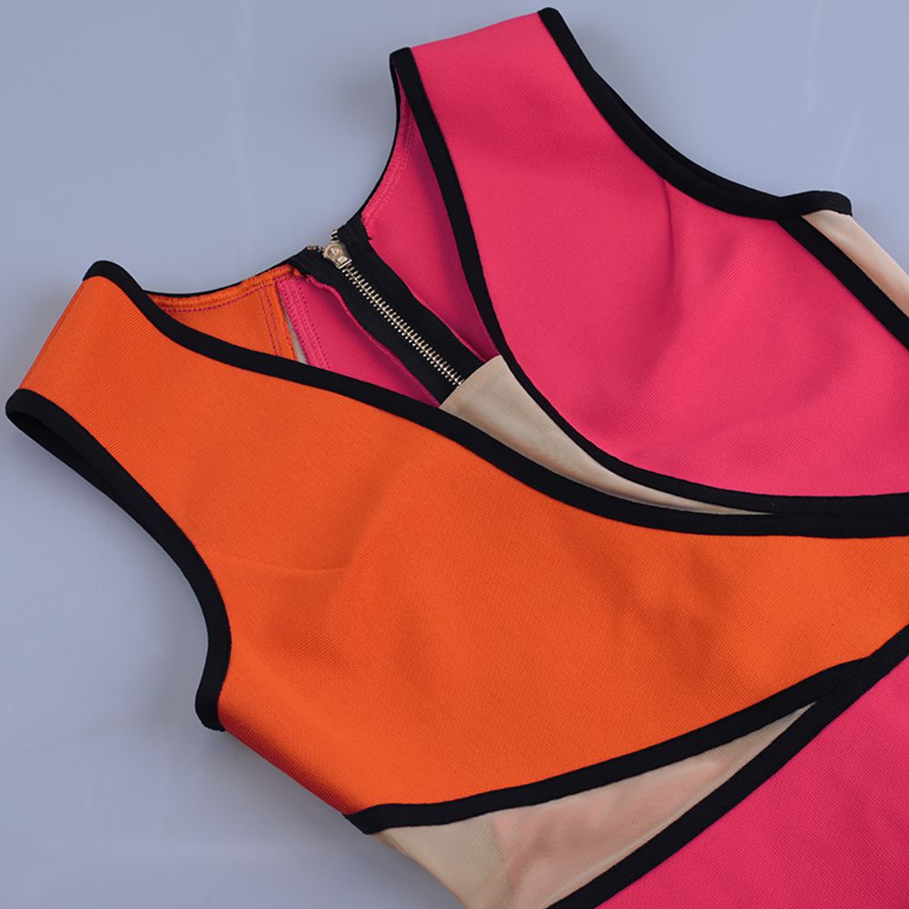 V Neck Sleeveless Mesh Mini Bandage Dress