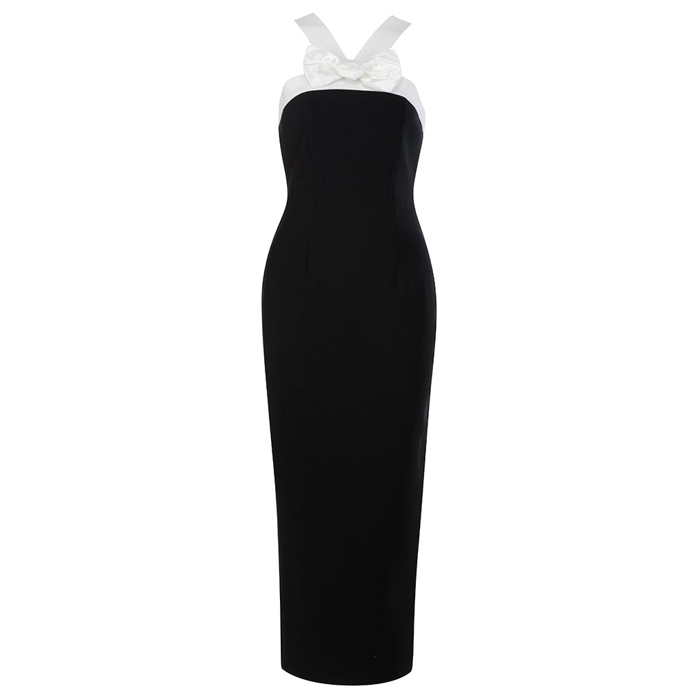 V Neck Sleeveless Midi Bowknot Bandage Dress