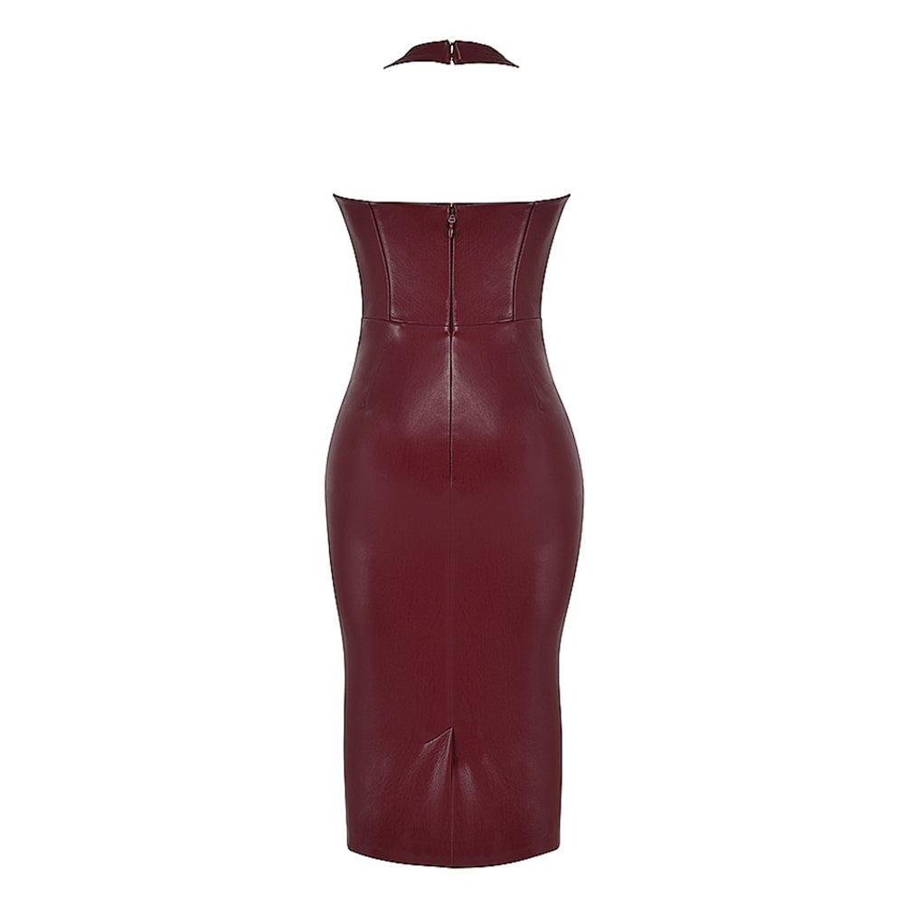 V Neck Sleeveless Over Knee Tie Bodycon Dress KLYF602