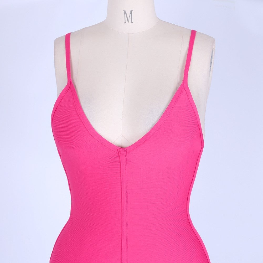 V Neck Sleeveless Plain Mini Bandage Dress