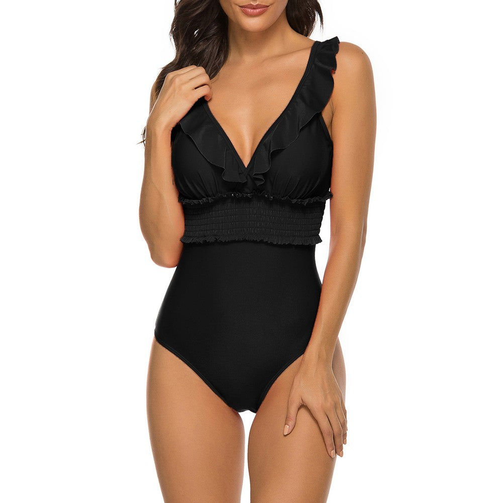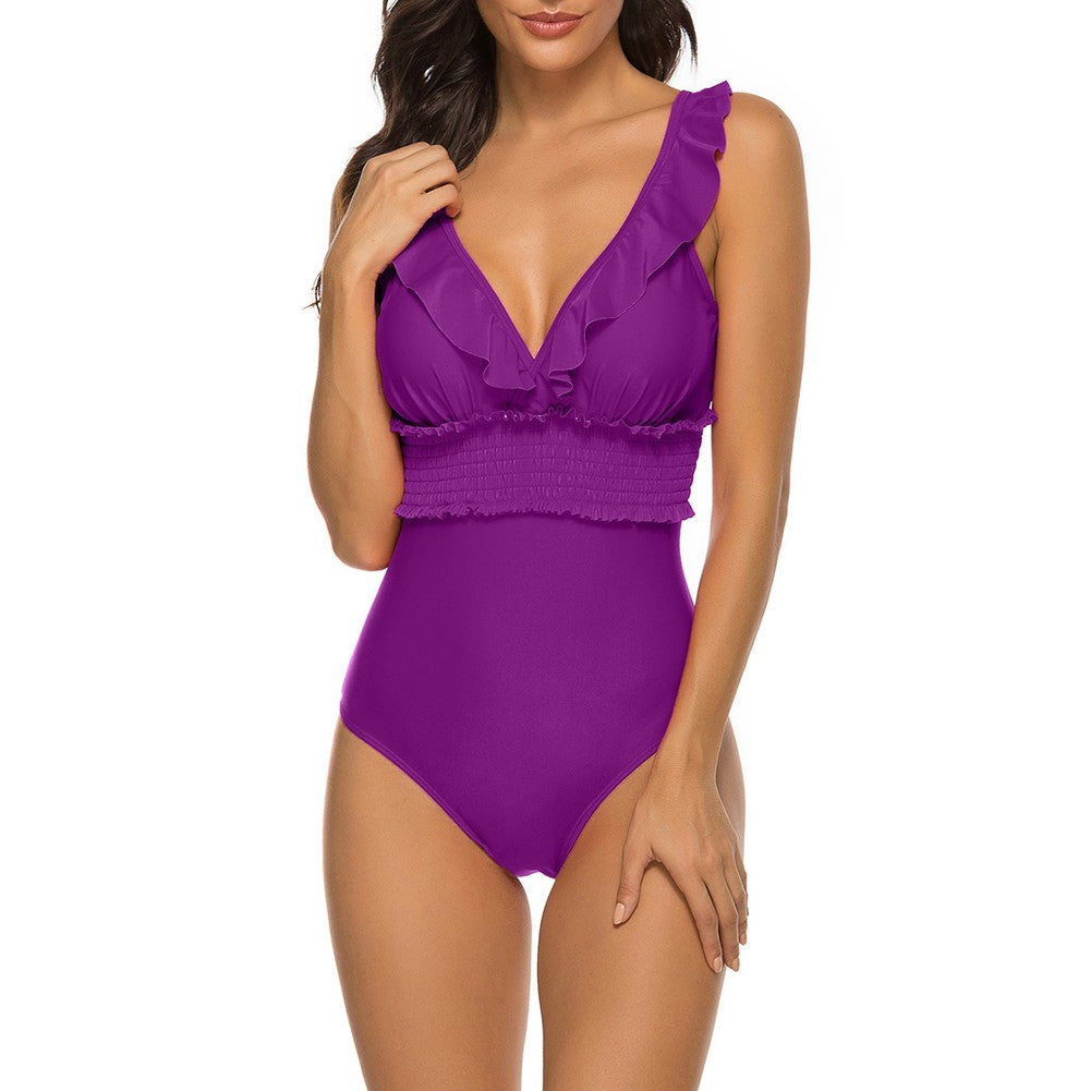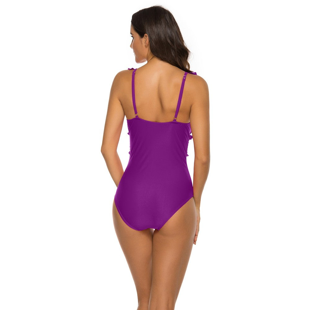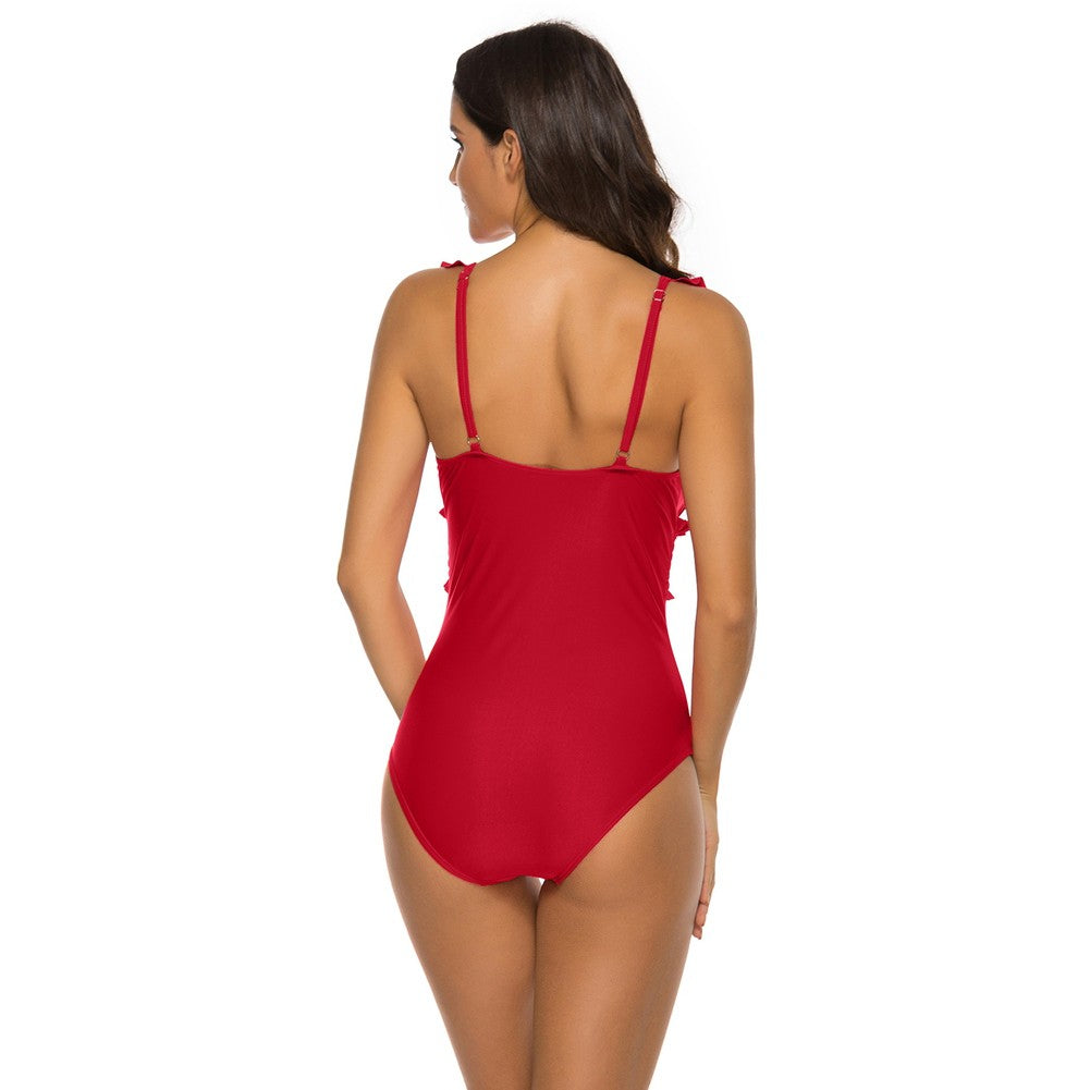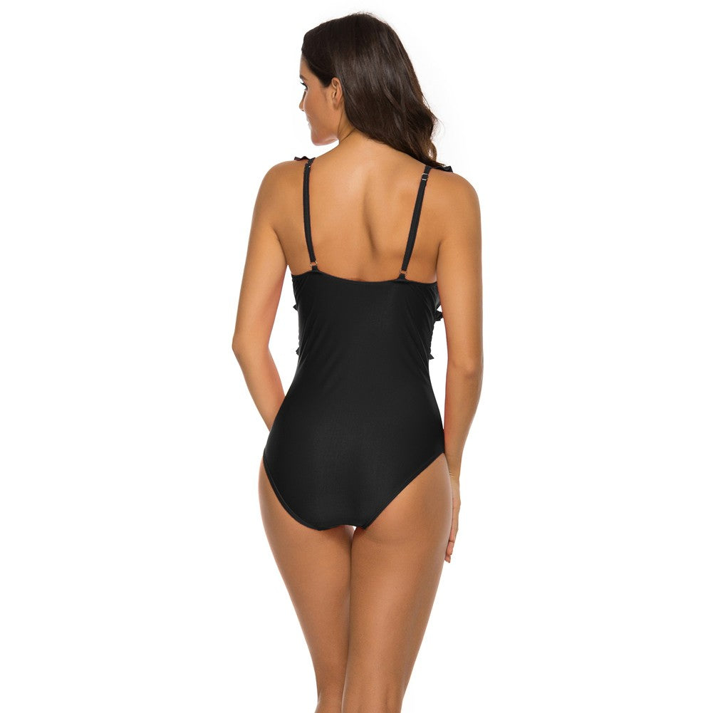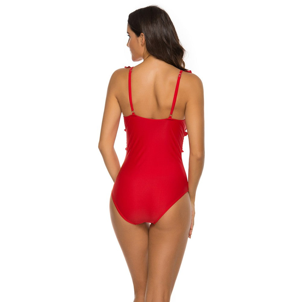 V Neck Sleeveless Ruffle Bodycon Swimsuit YSL0180