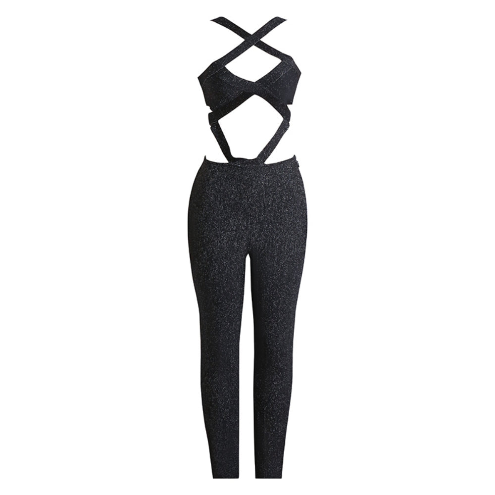 V Neck Sleeveless Shiny Bandage Jumpsuit
